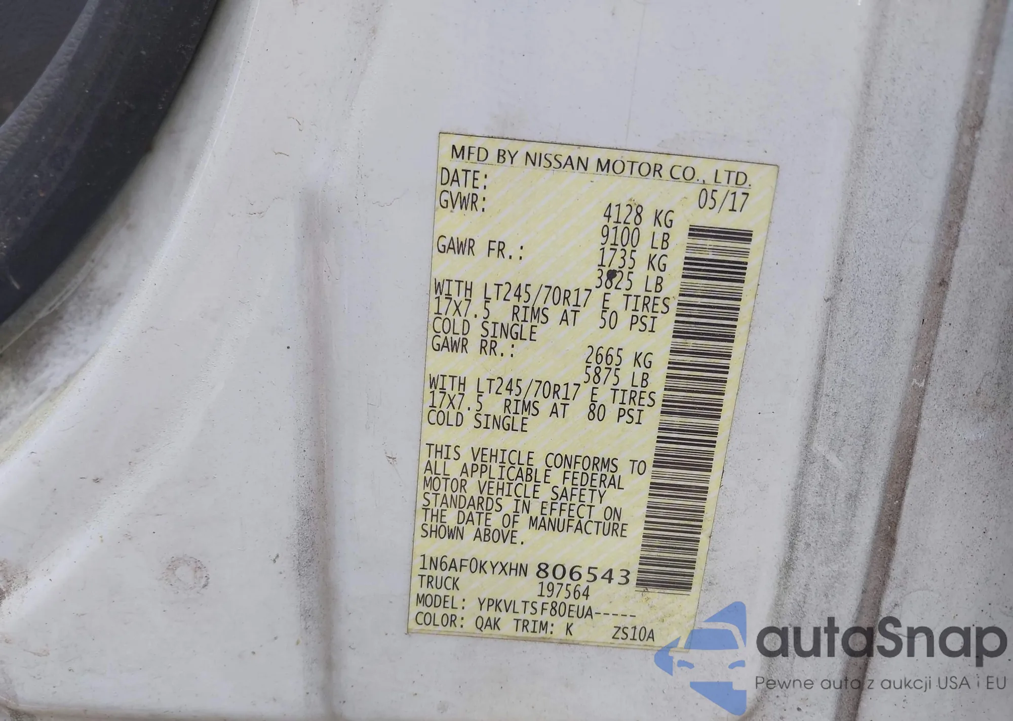 • VIN 1N6AF0KYXHN806543