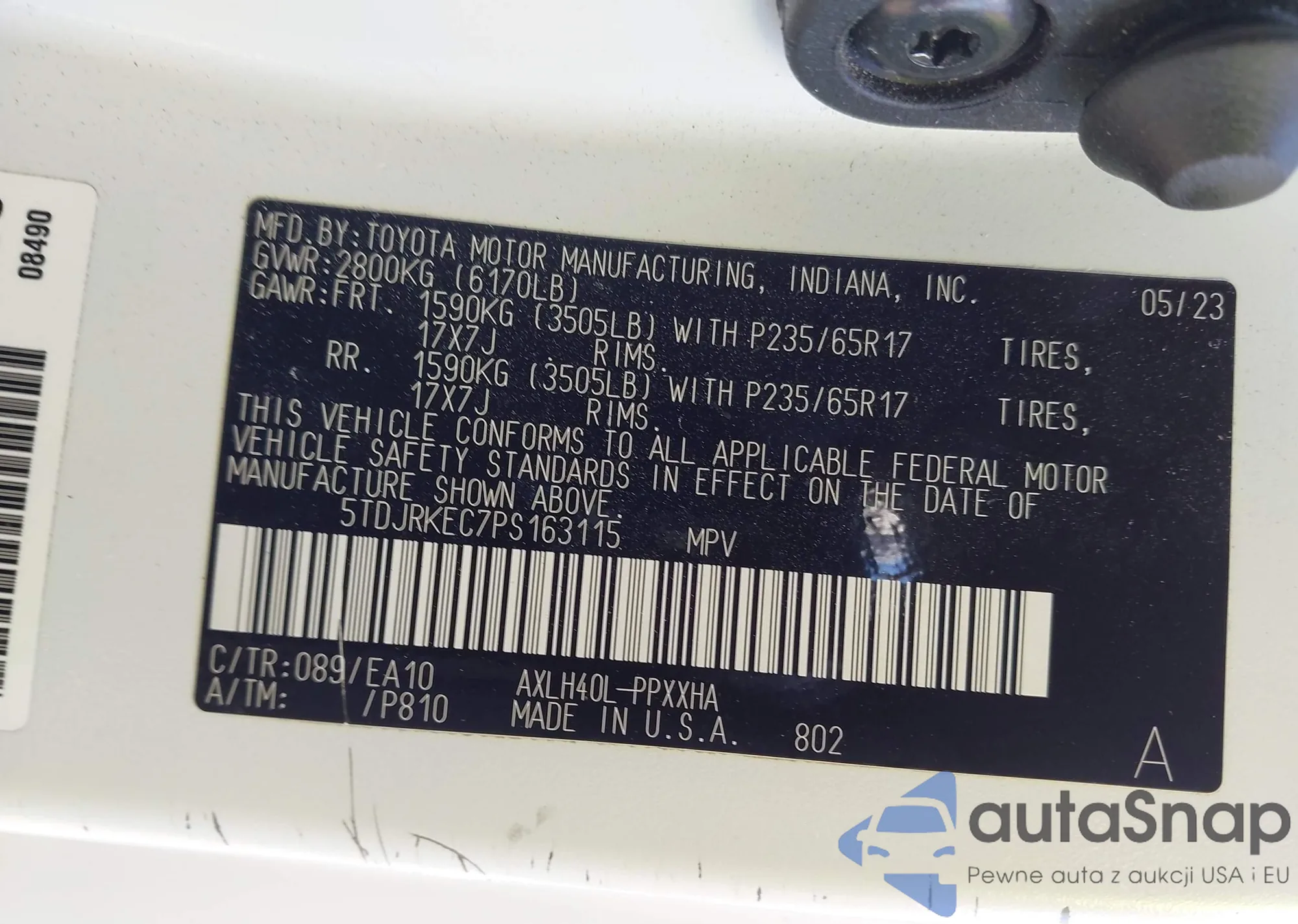 • VIN 5TDJRKEC7PS163115