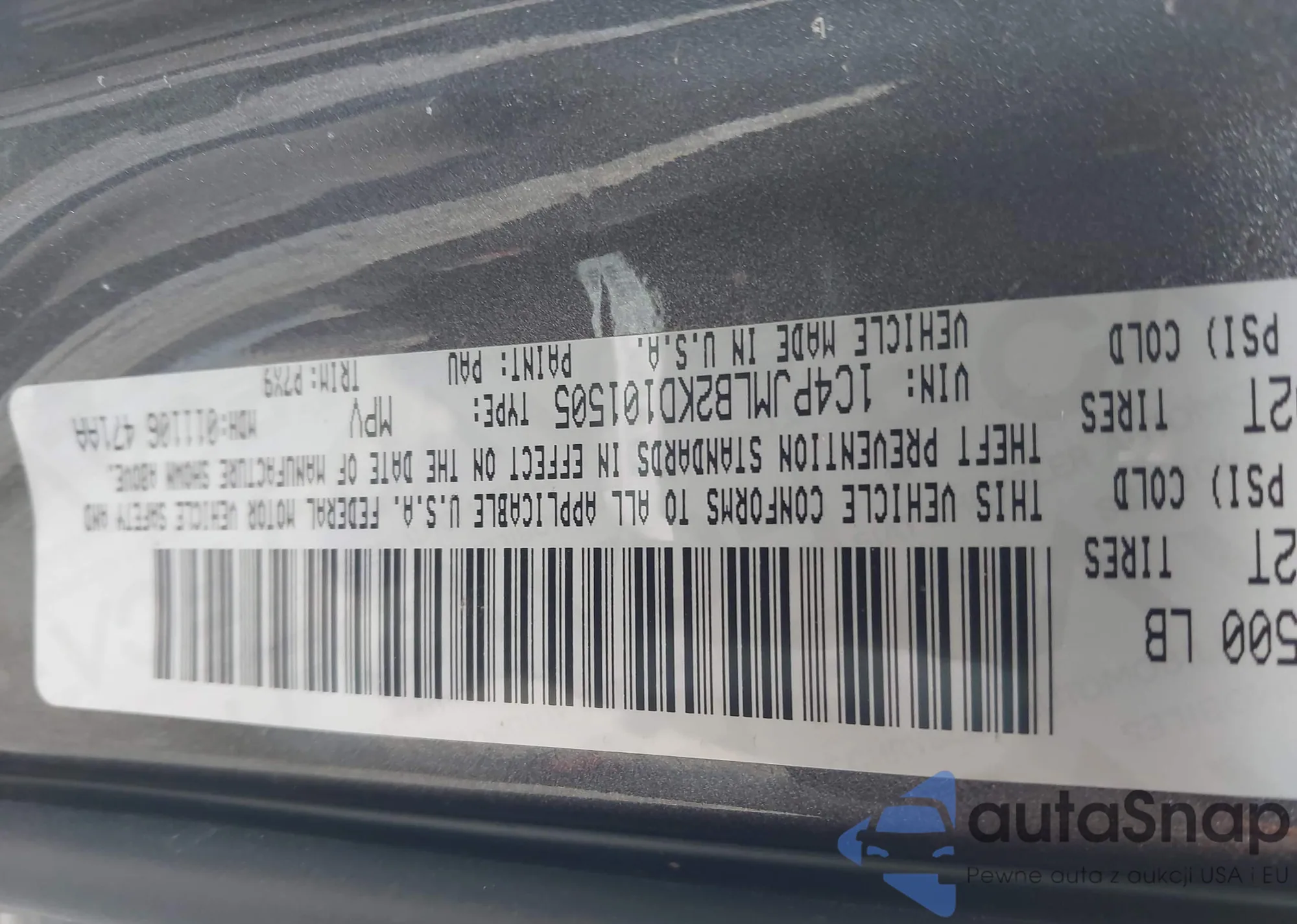 • VIN 1C4PJMLB2KD101505