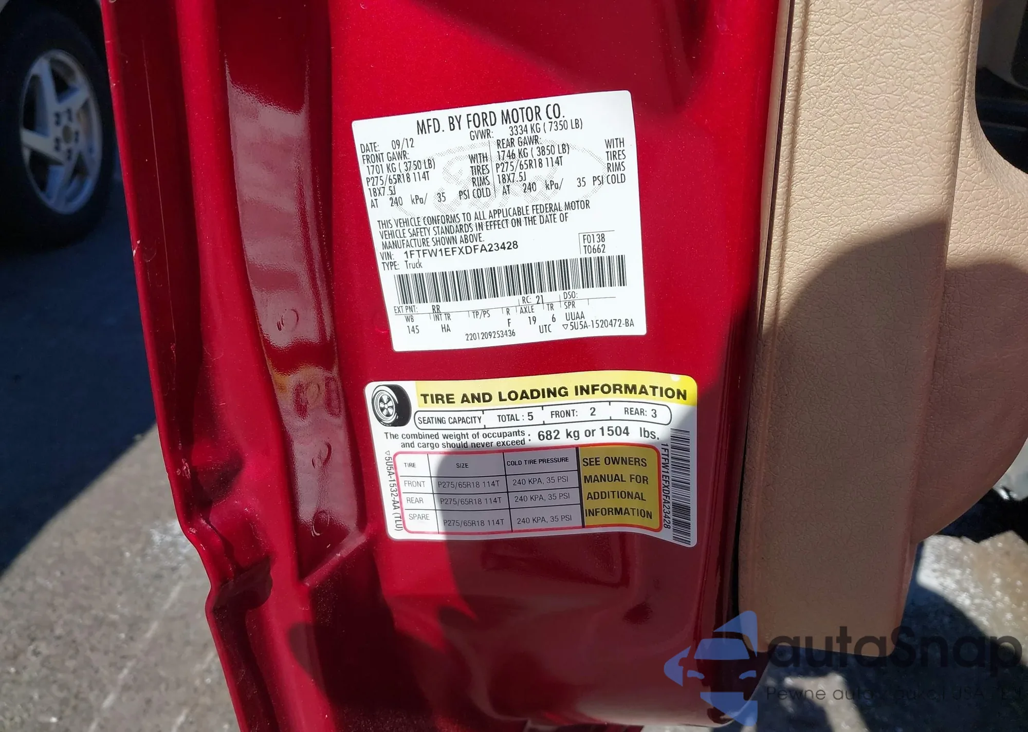 • VIN 1FTFW1EFXDFA23428