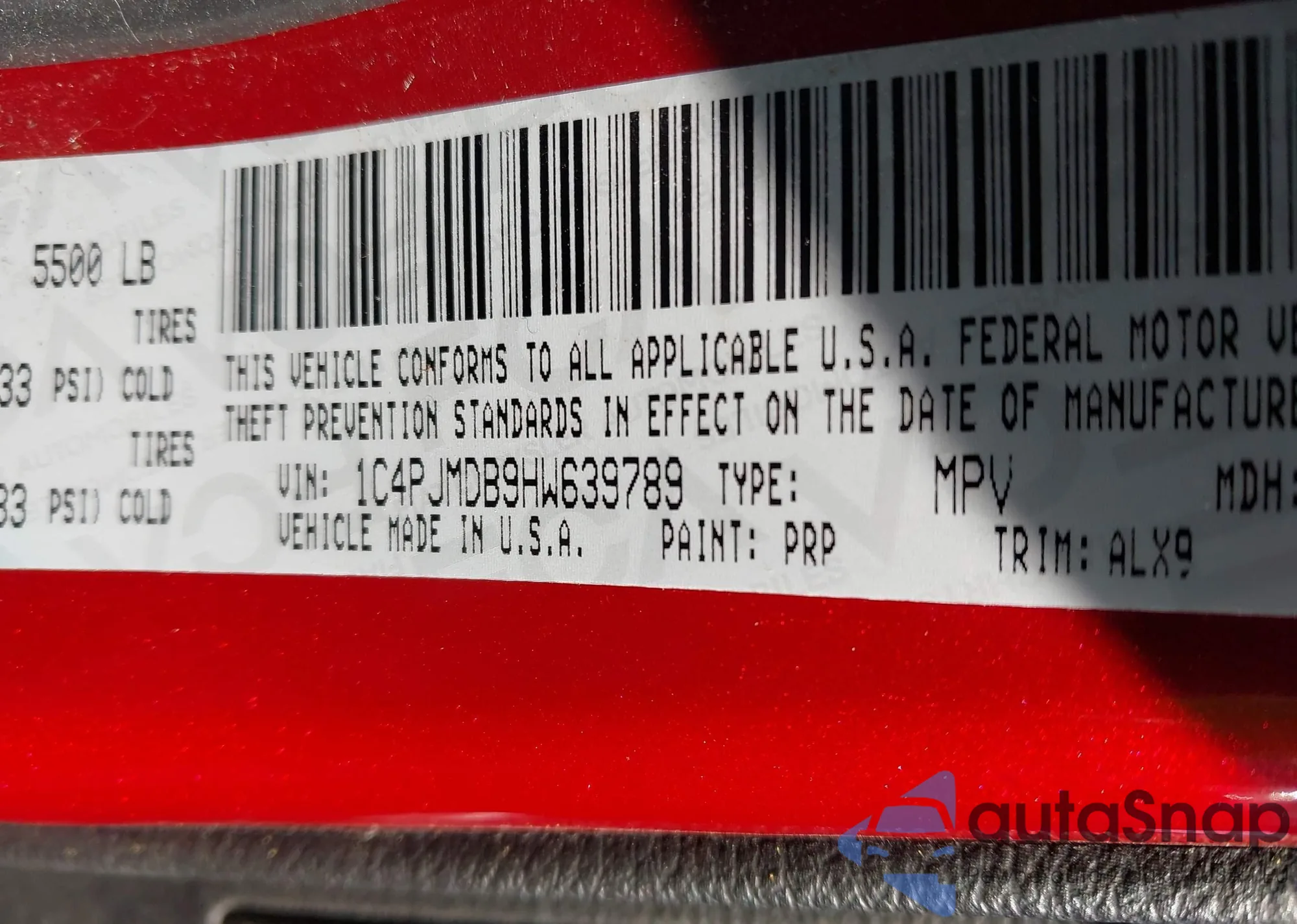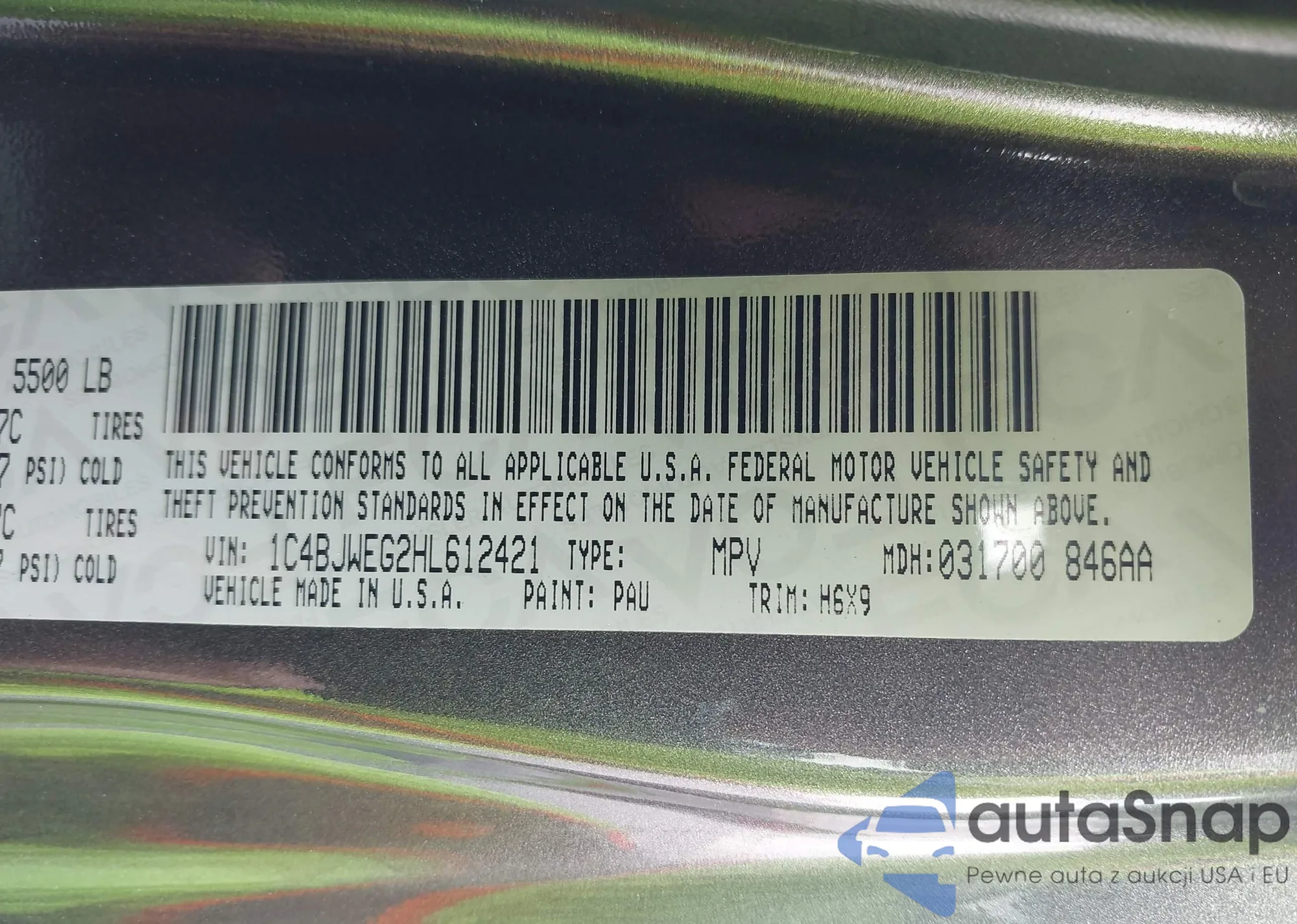 • VIN 1C4BJWEG2HL612421