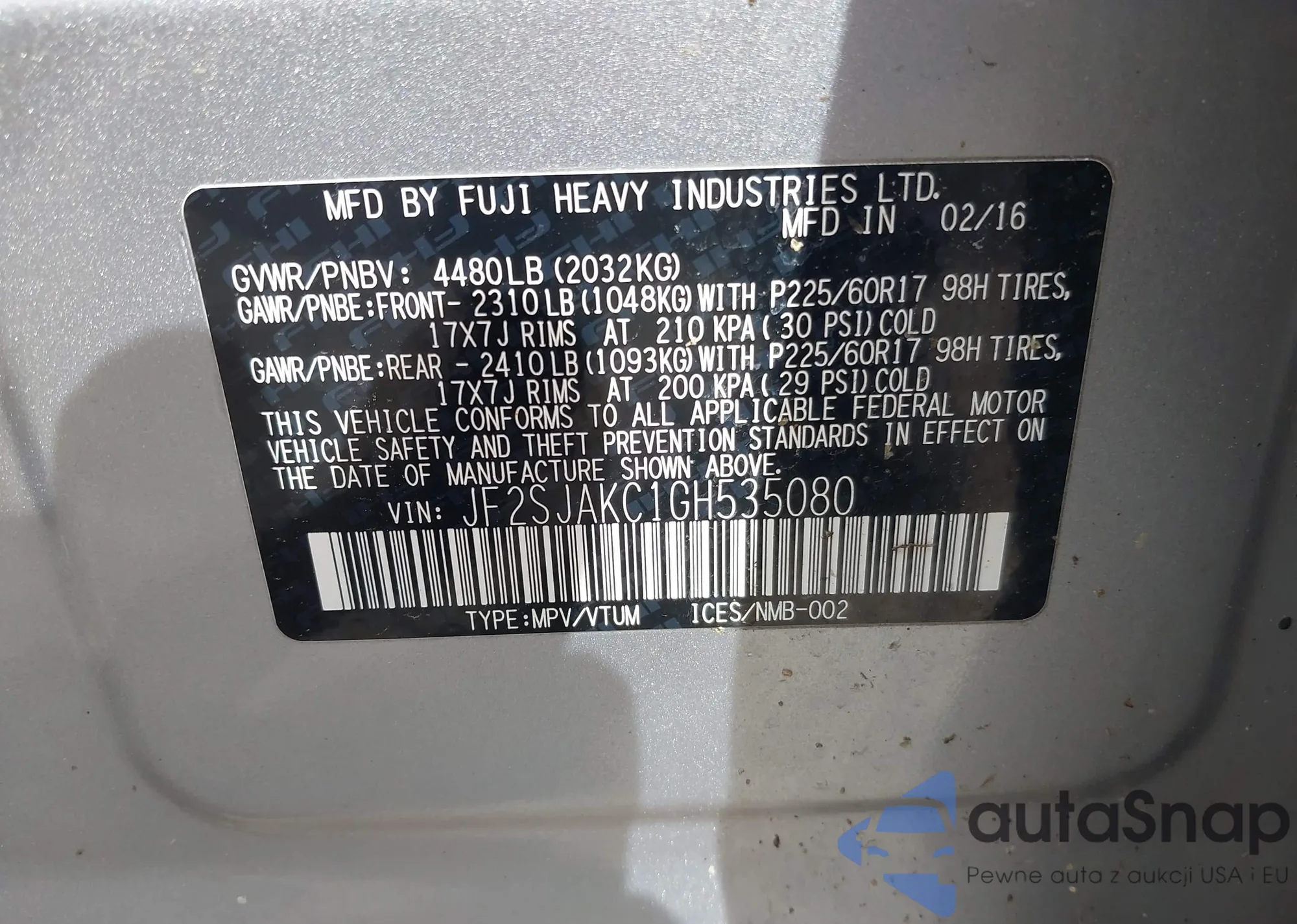 LOT: 42635273 VIN: KNADM4A33H6046627