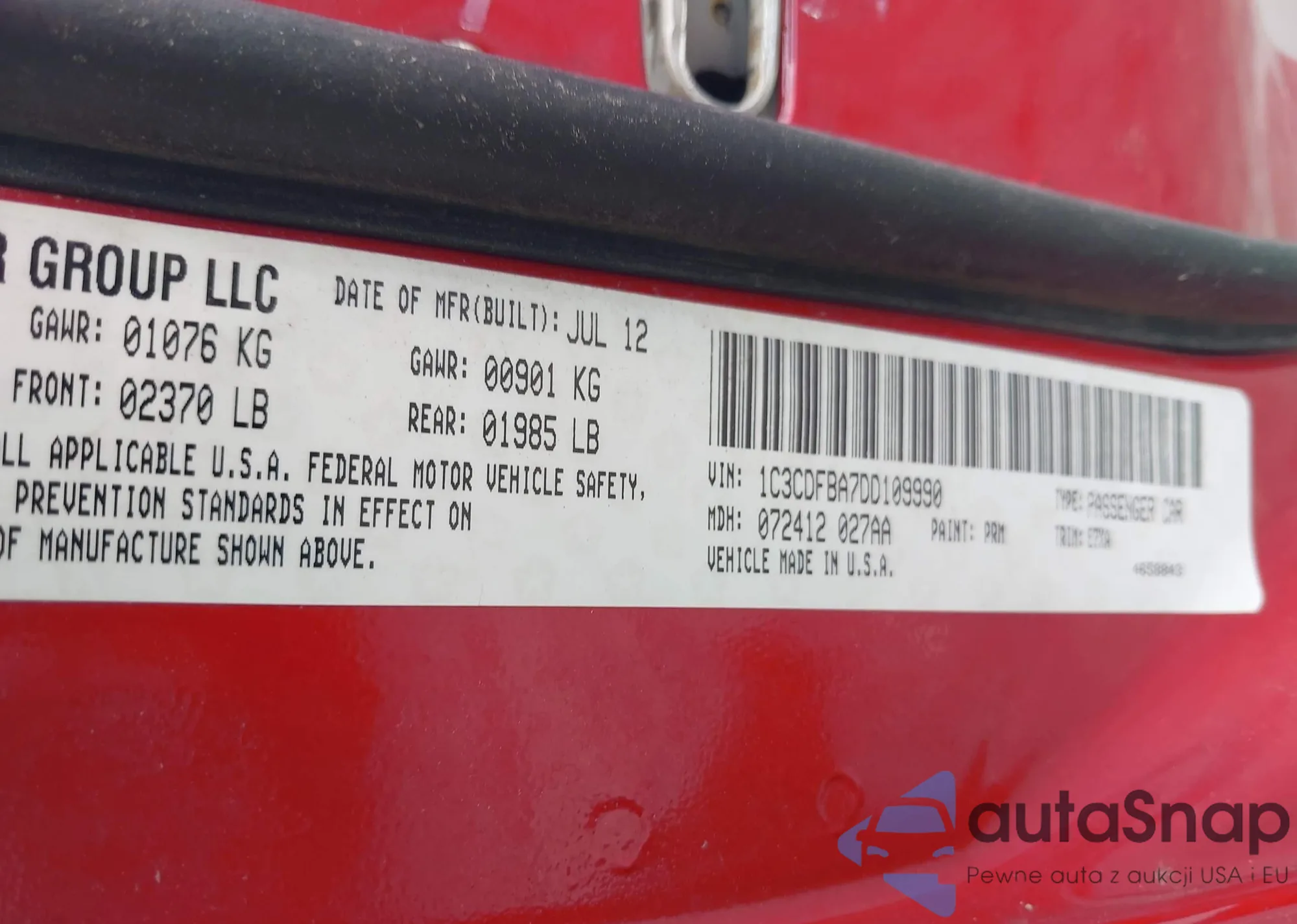 • VIN 1C3CDFBA7DD109990