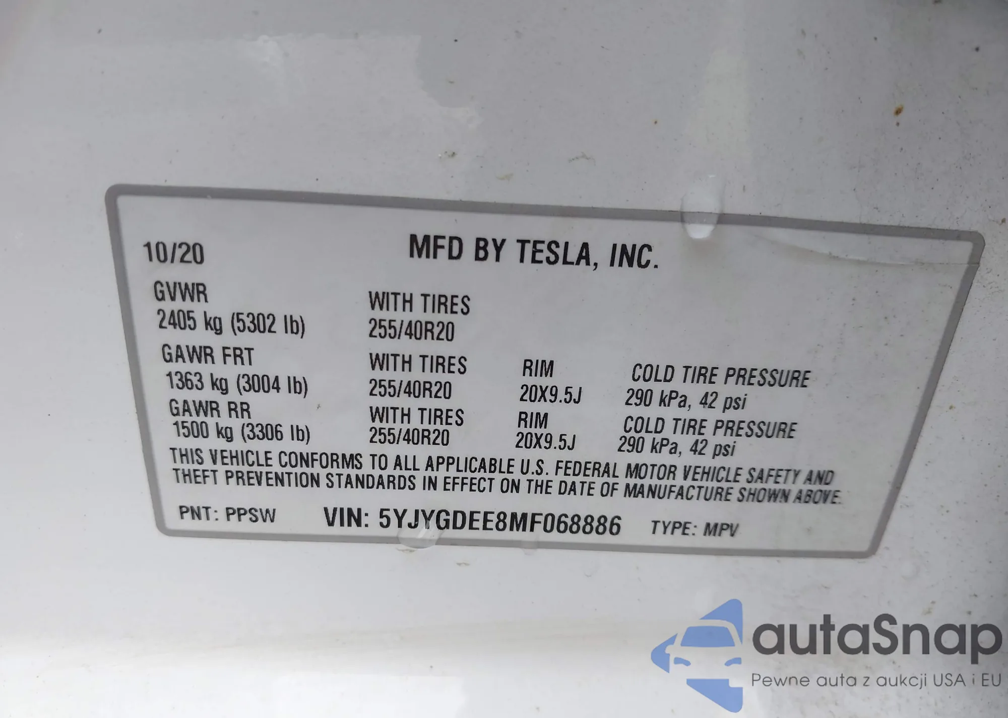 LOT: 42536688 VIN: 5YJYGDEE8MF068886