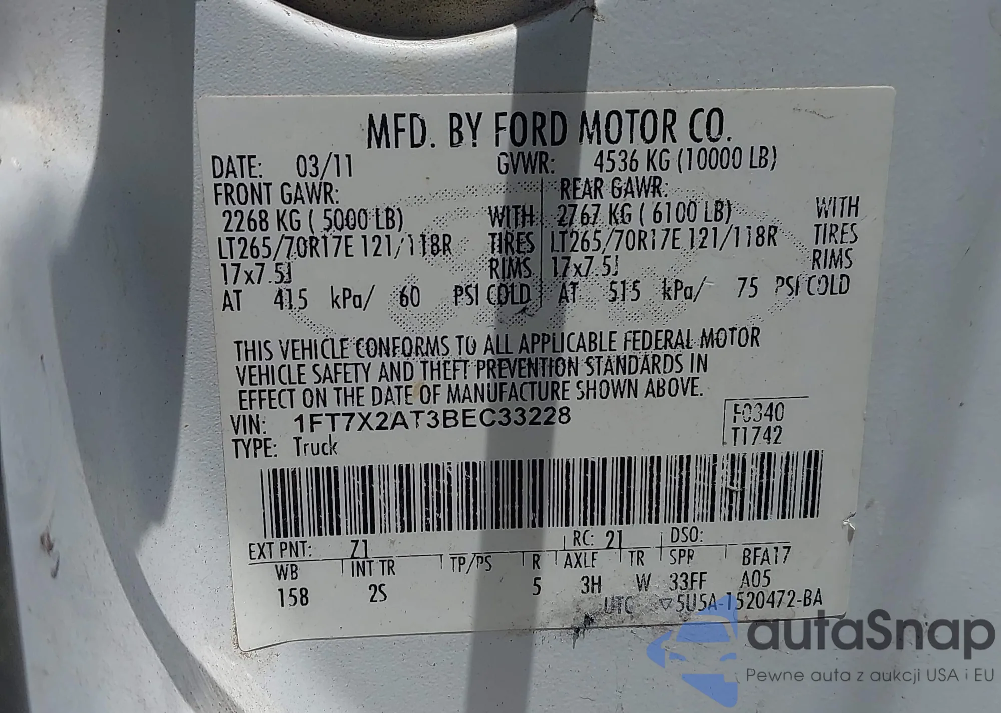 • VIN 1FT7X2AT3BEC33228