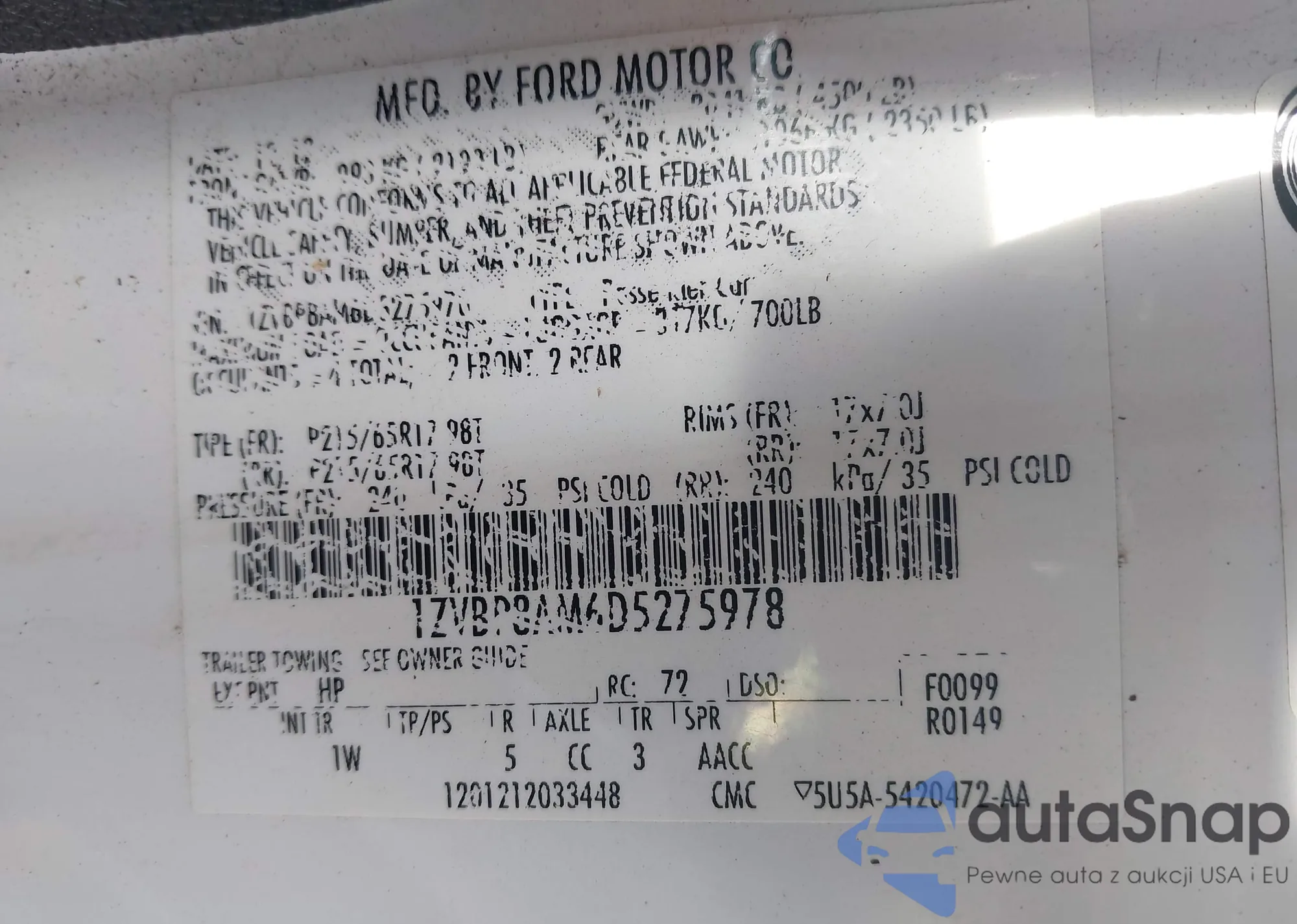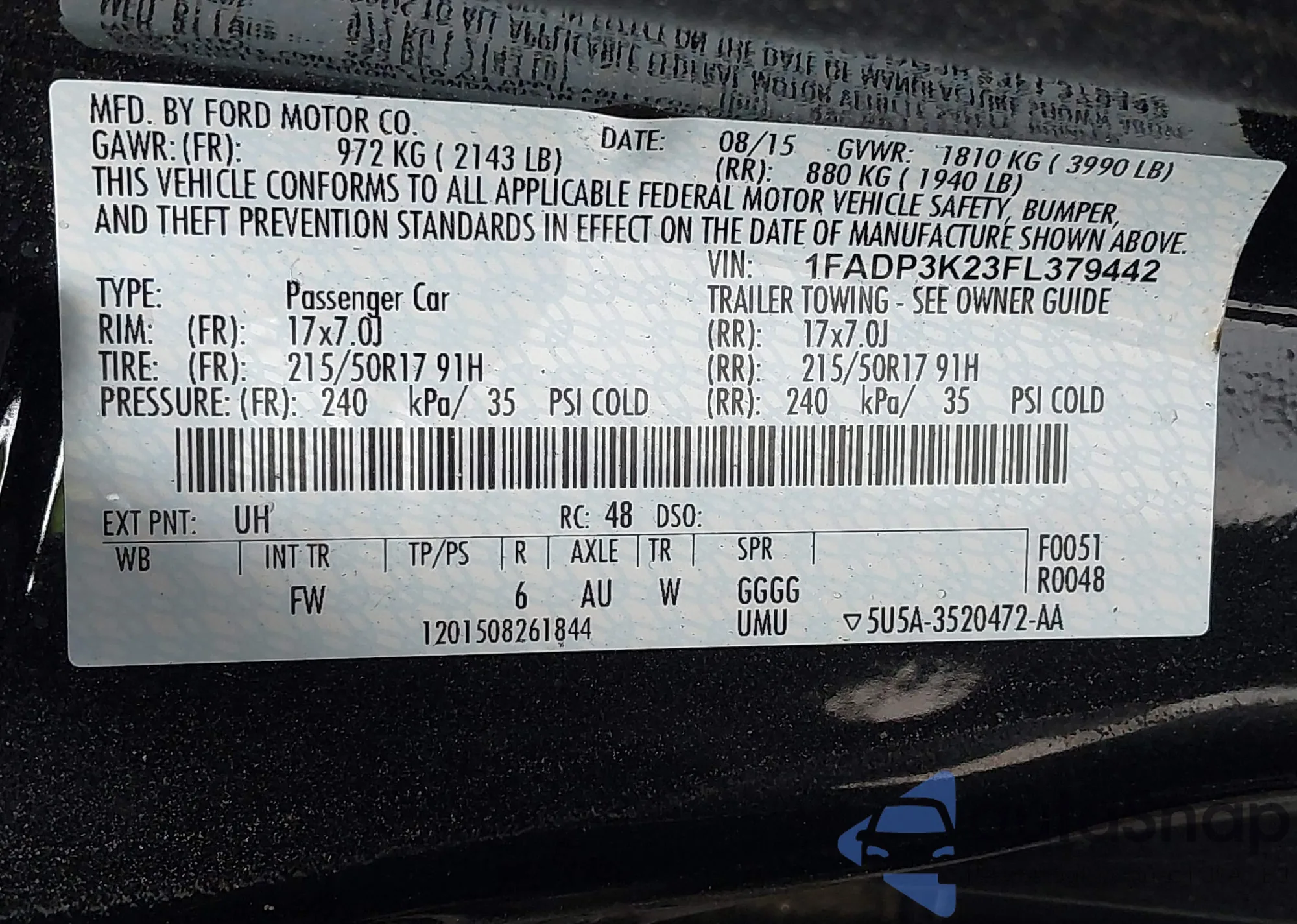 • VIN 3FAHP0JG9BR172045