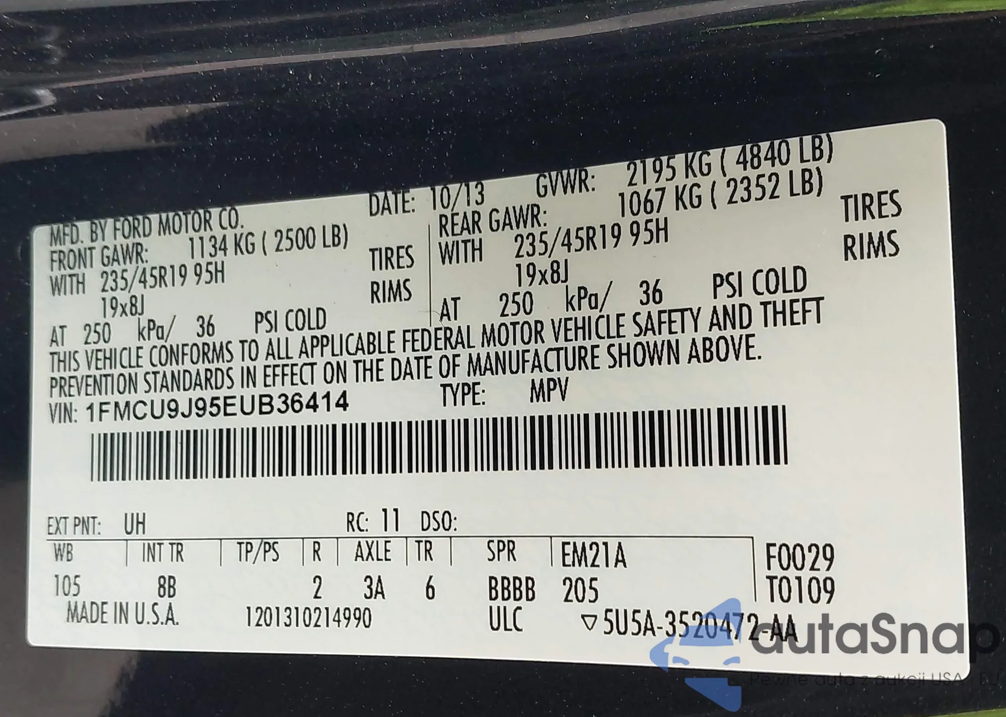 LOT: 42431345 VIN: 1FMCU0J98EUA86779