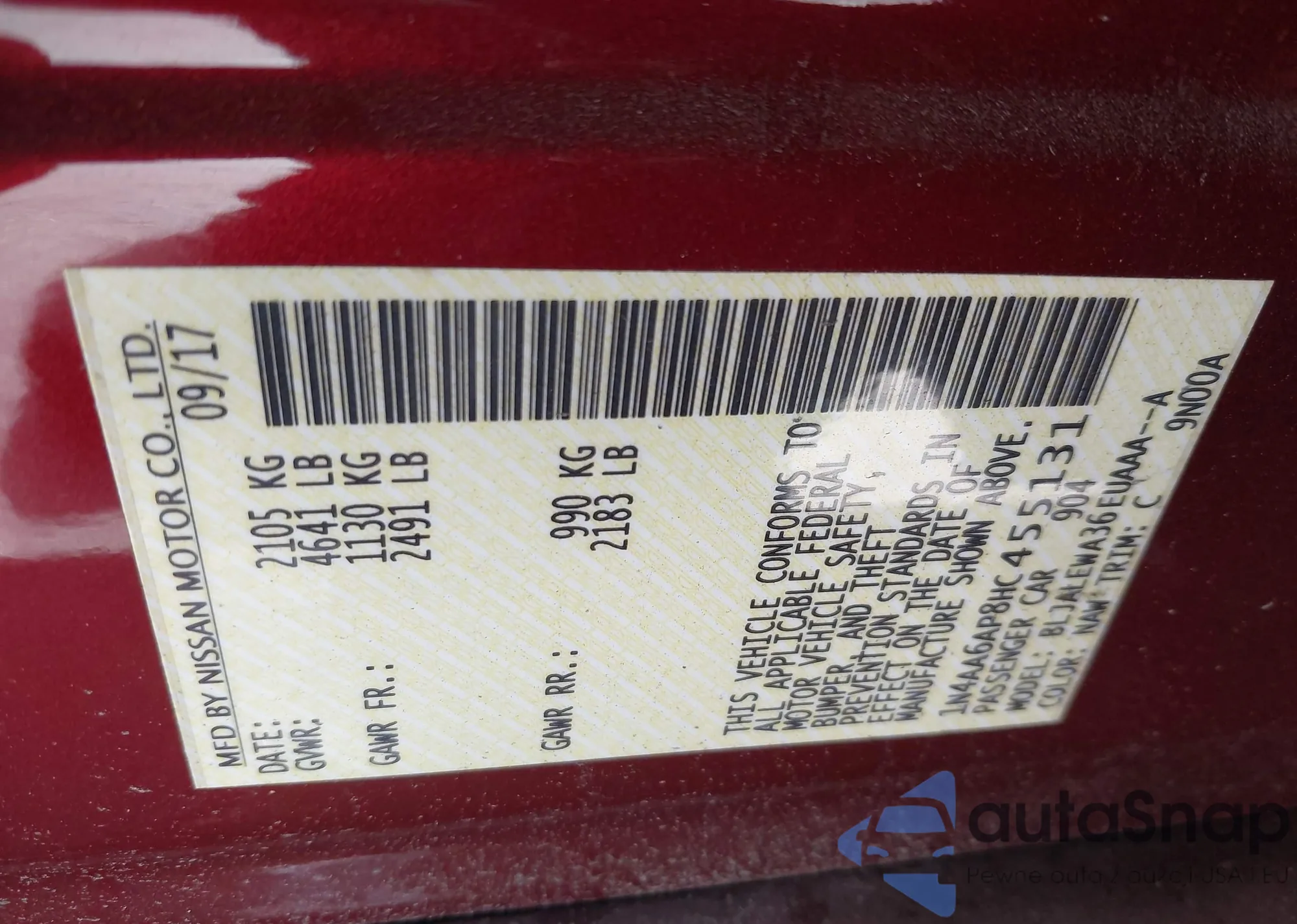 • VIN 5N1AR2MM8DC627791