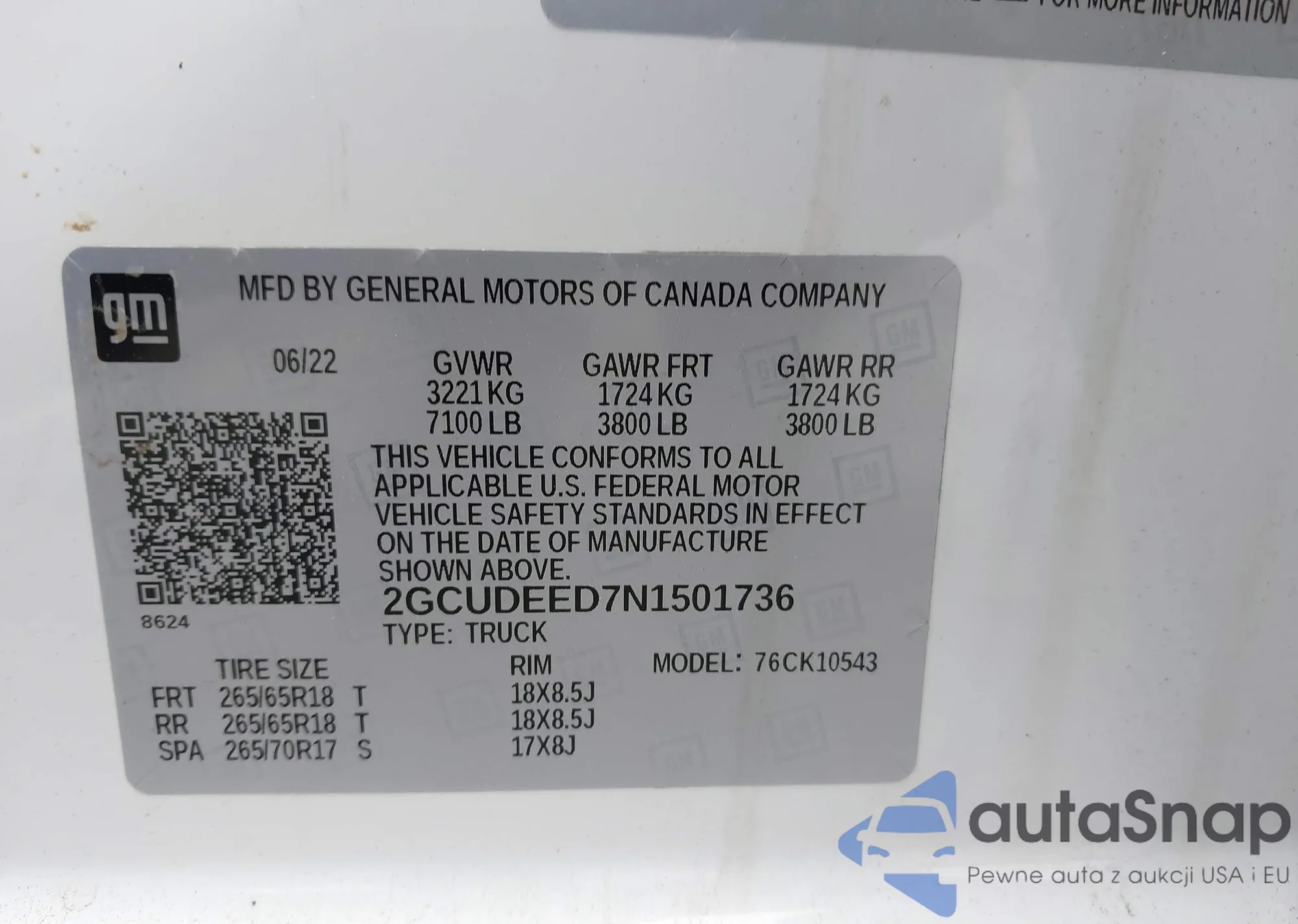 LOT: 41475460 VIN: 2GCUDEED7N1501736