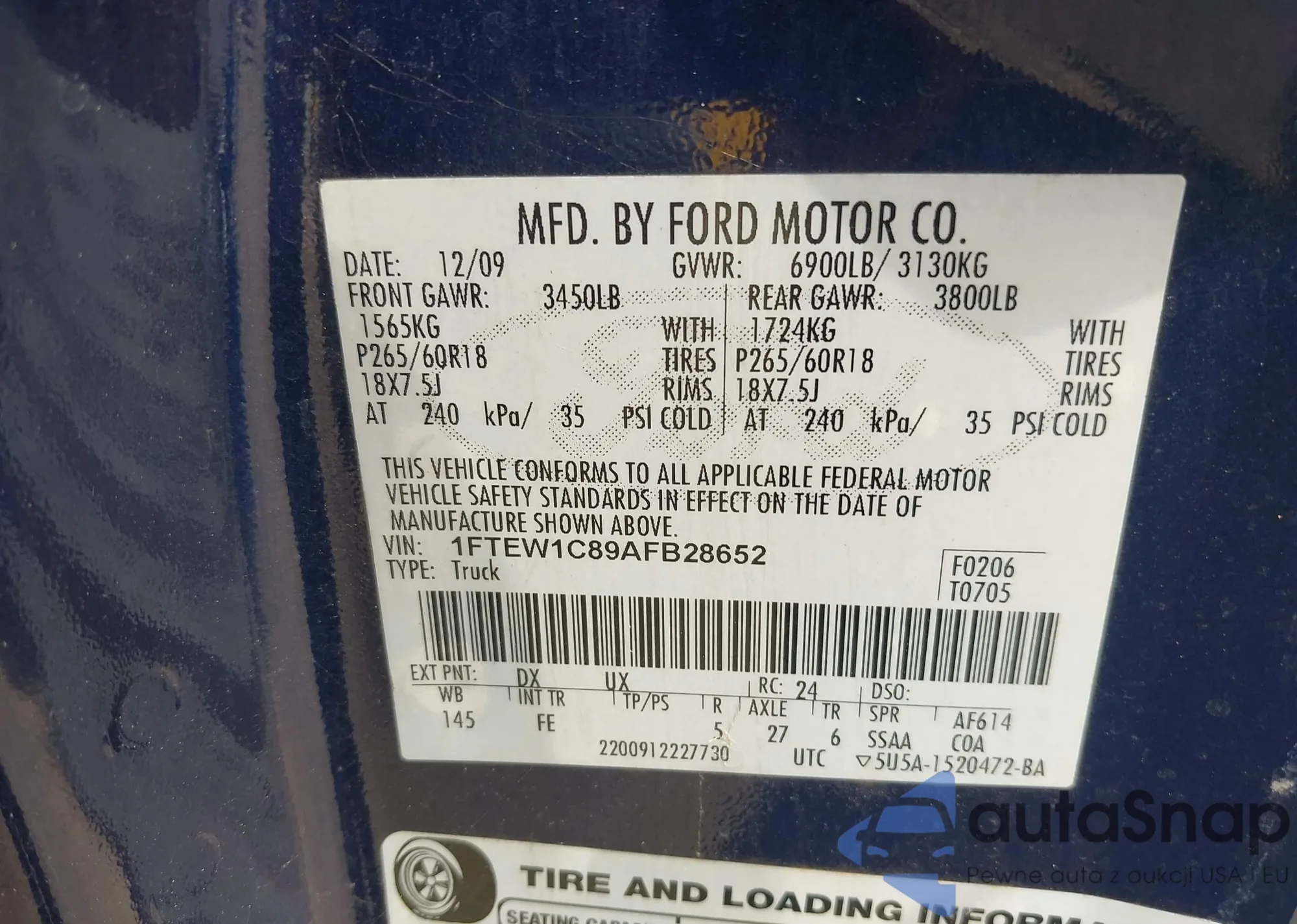 • VIN 1FTEW1C89AFB28652
