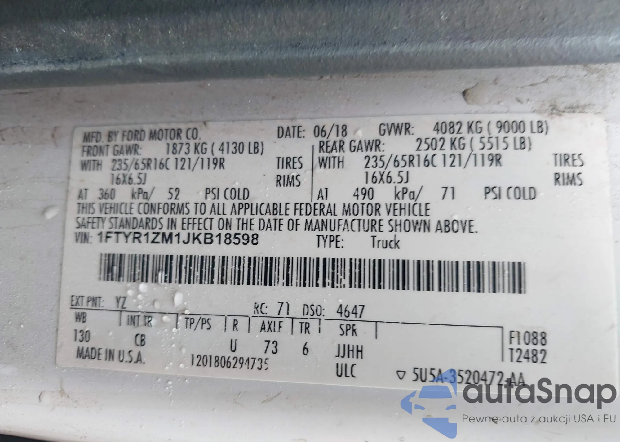 LOT: 42494182 VIN: 1FTEX1C56JKF44815