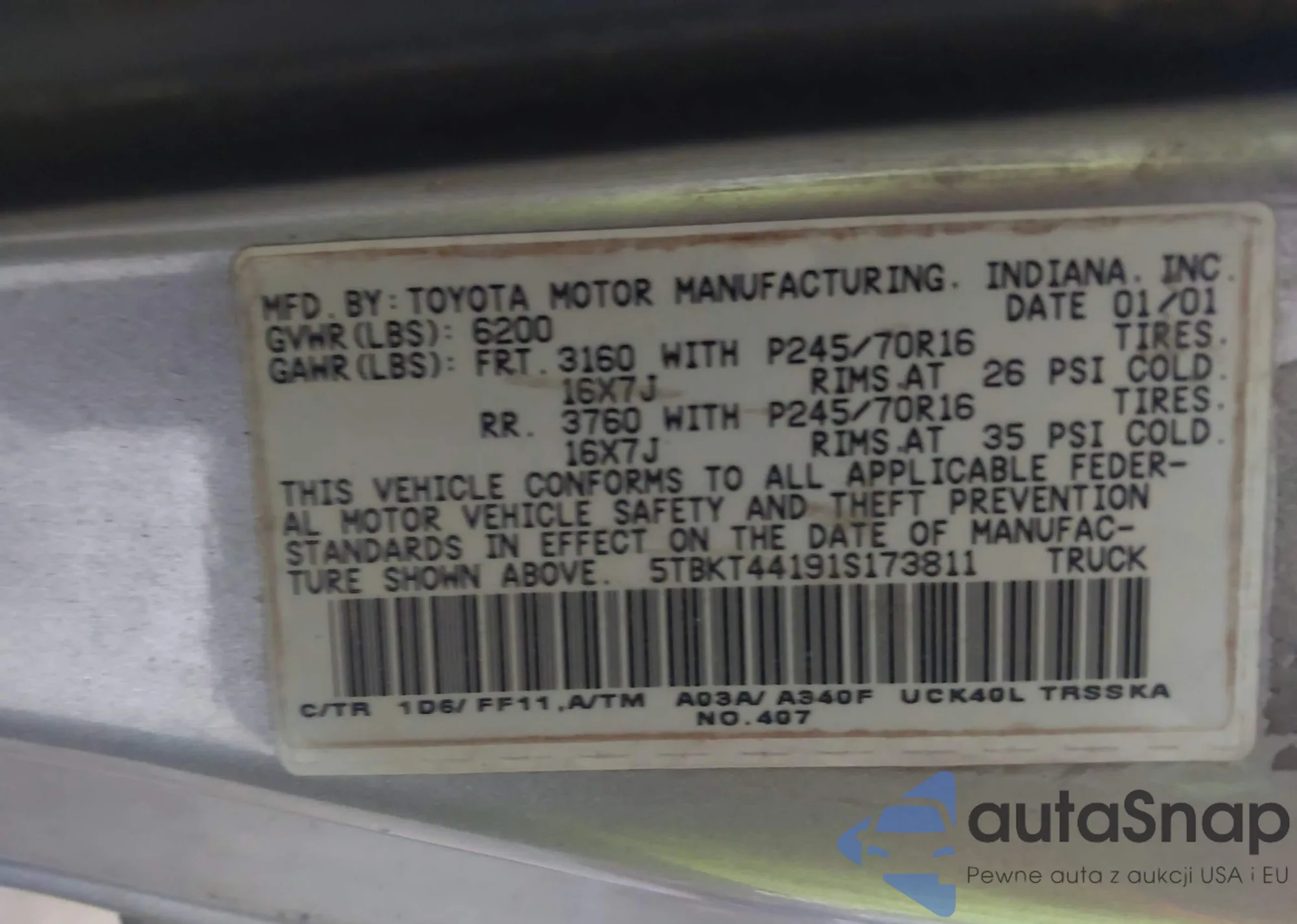 LOT: 42584793 VIN: 5TBKT44191S173811