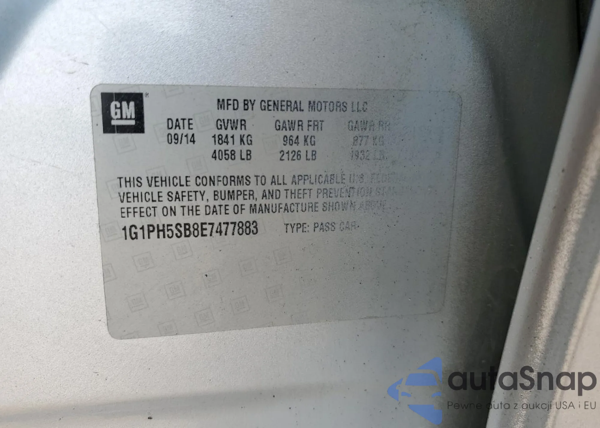 LOT: 55494445 VIN: 1G1PG5SB8E7369797