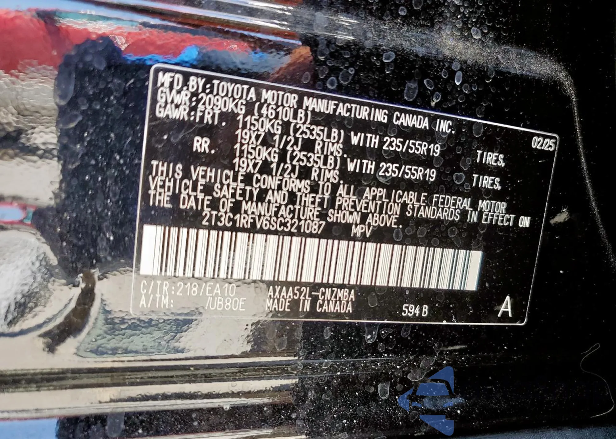• VIN 2T3C1RFV6SC321087