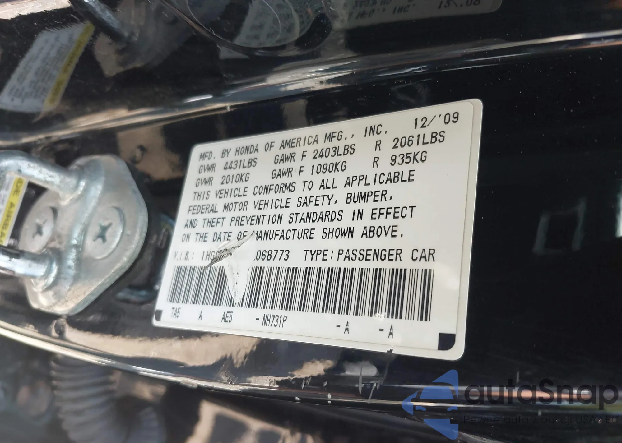 • VIN 1HGCP2F8XAA068773
