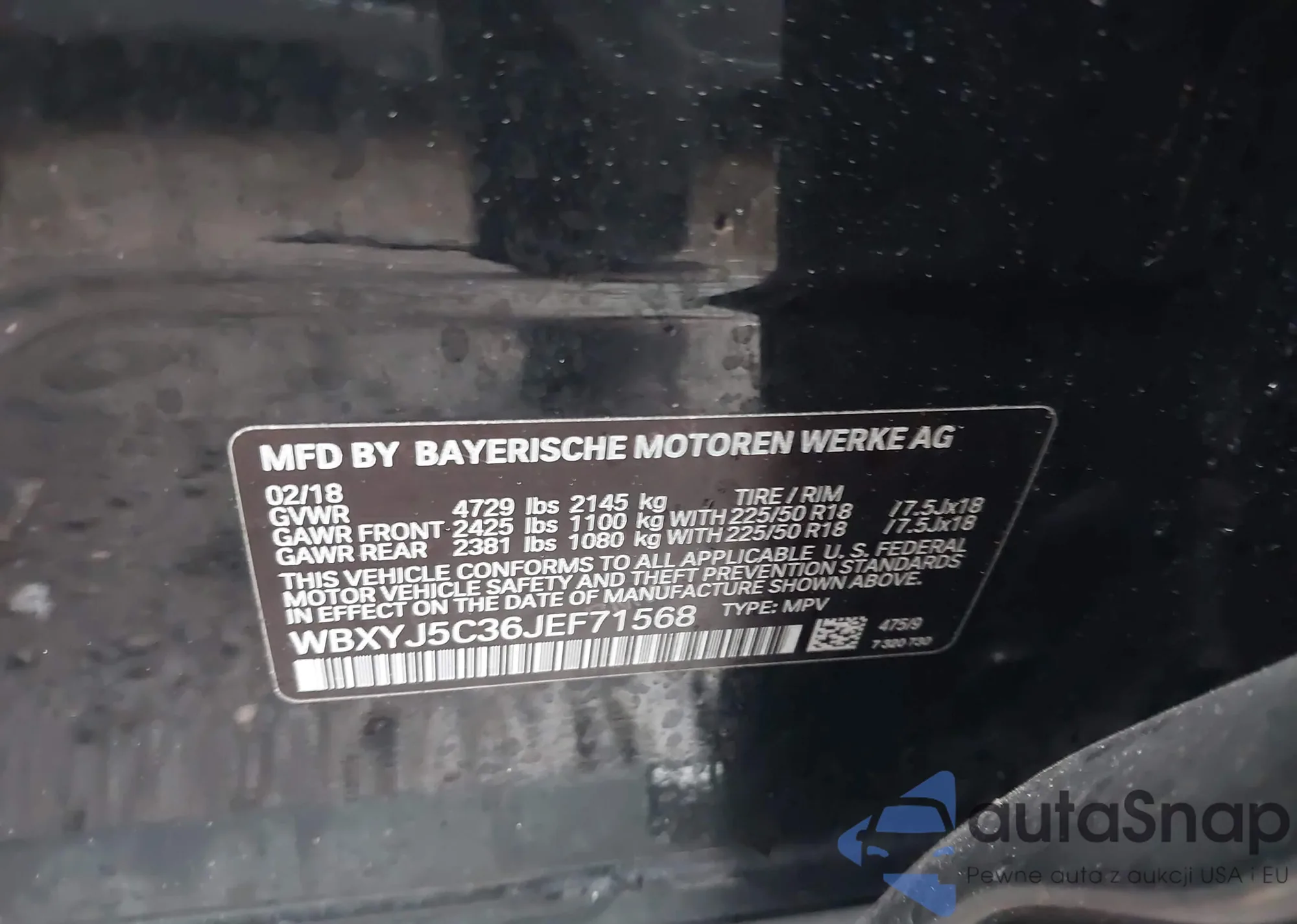 LOT: 41930073 VIN: WBXYJ5C36JEF71568