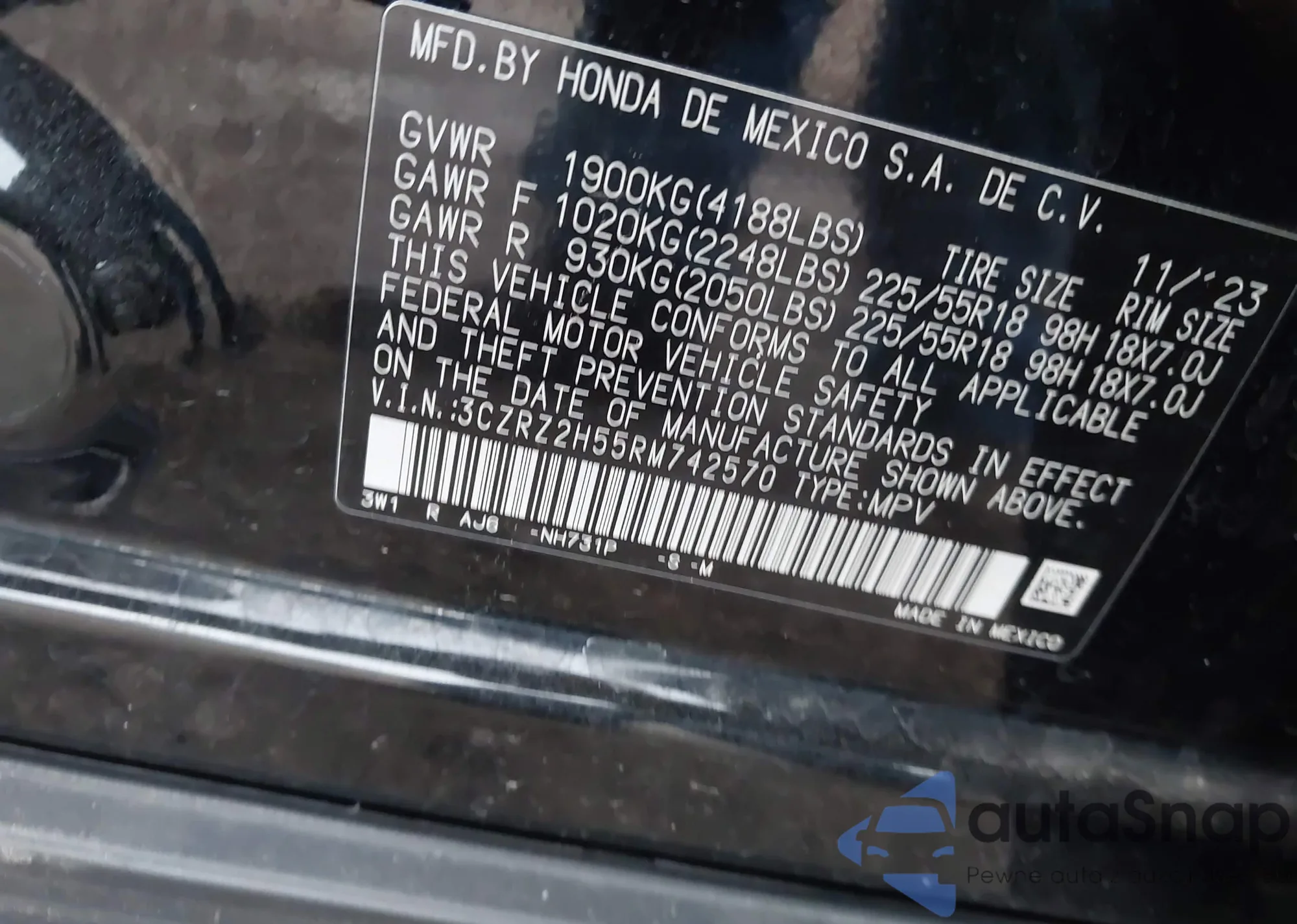 • VIN 3CZRZ2H55RM742570