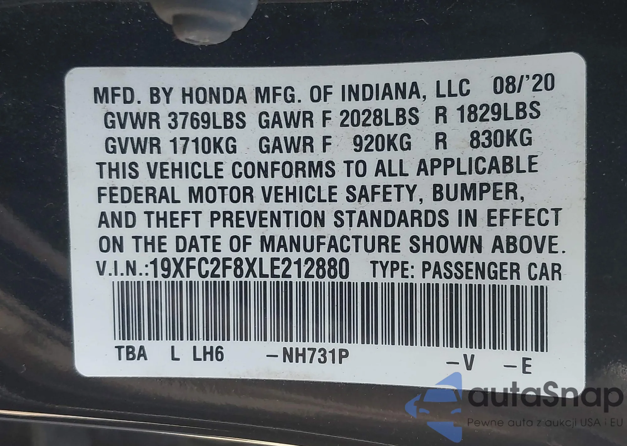 • VIN 19UUB1F53FA004780