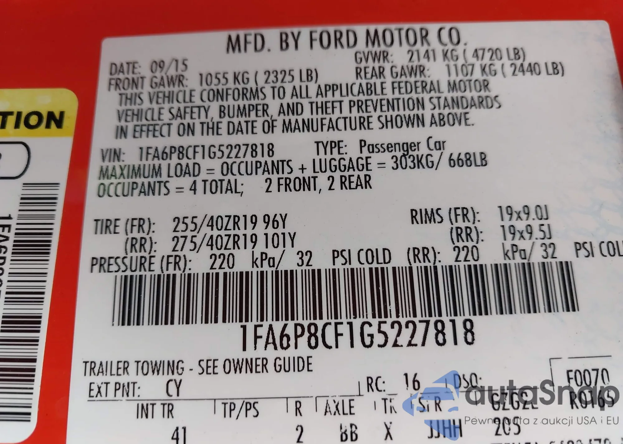 • VIN 1FA6P8CF1G5227818