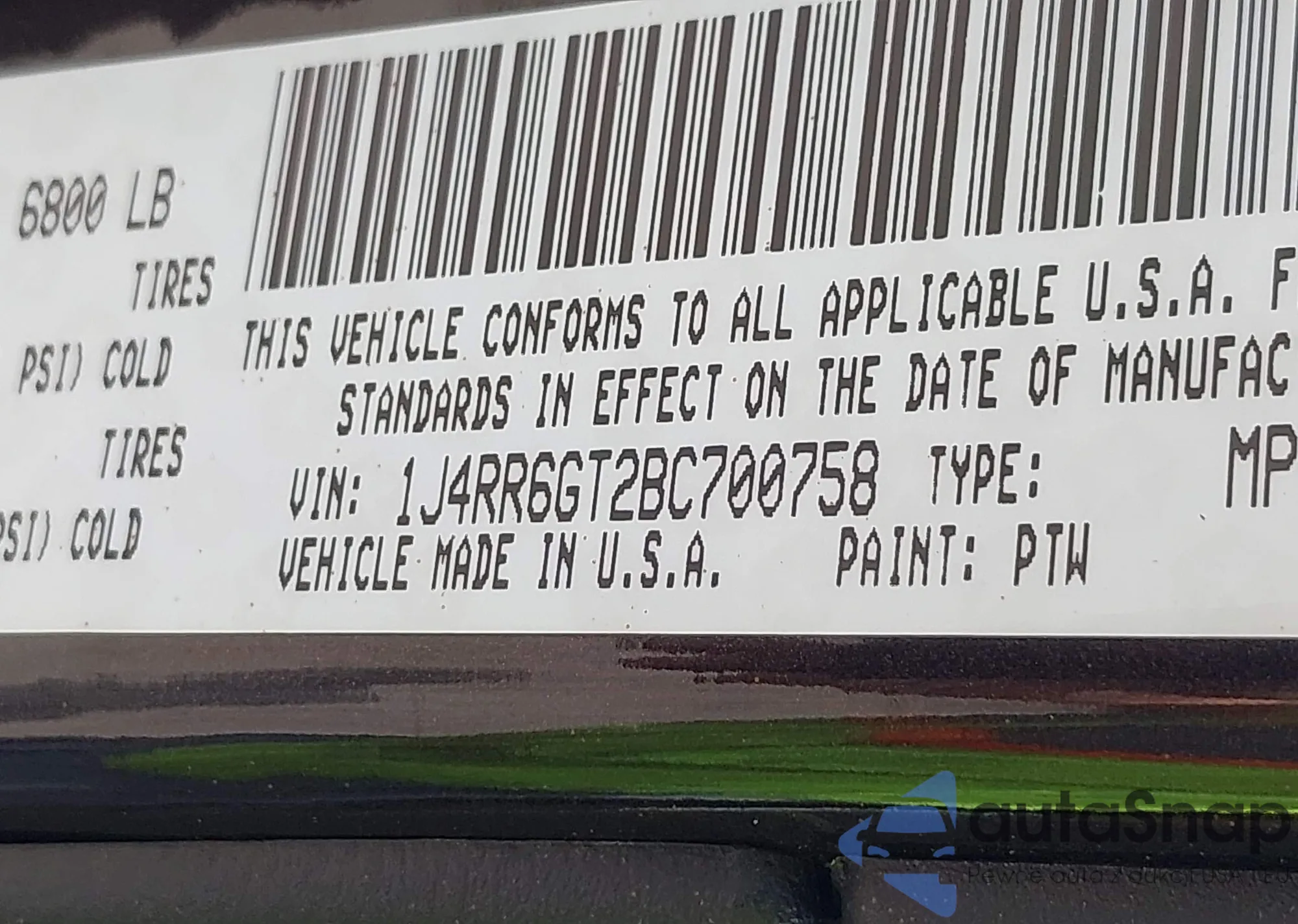 LOT: 42260235 VIN: 1J4RR6GT2BC700758