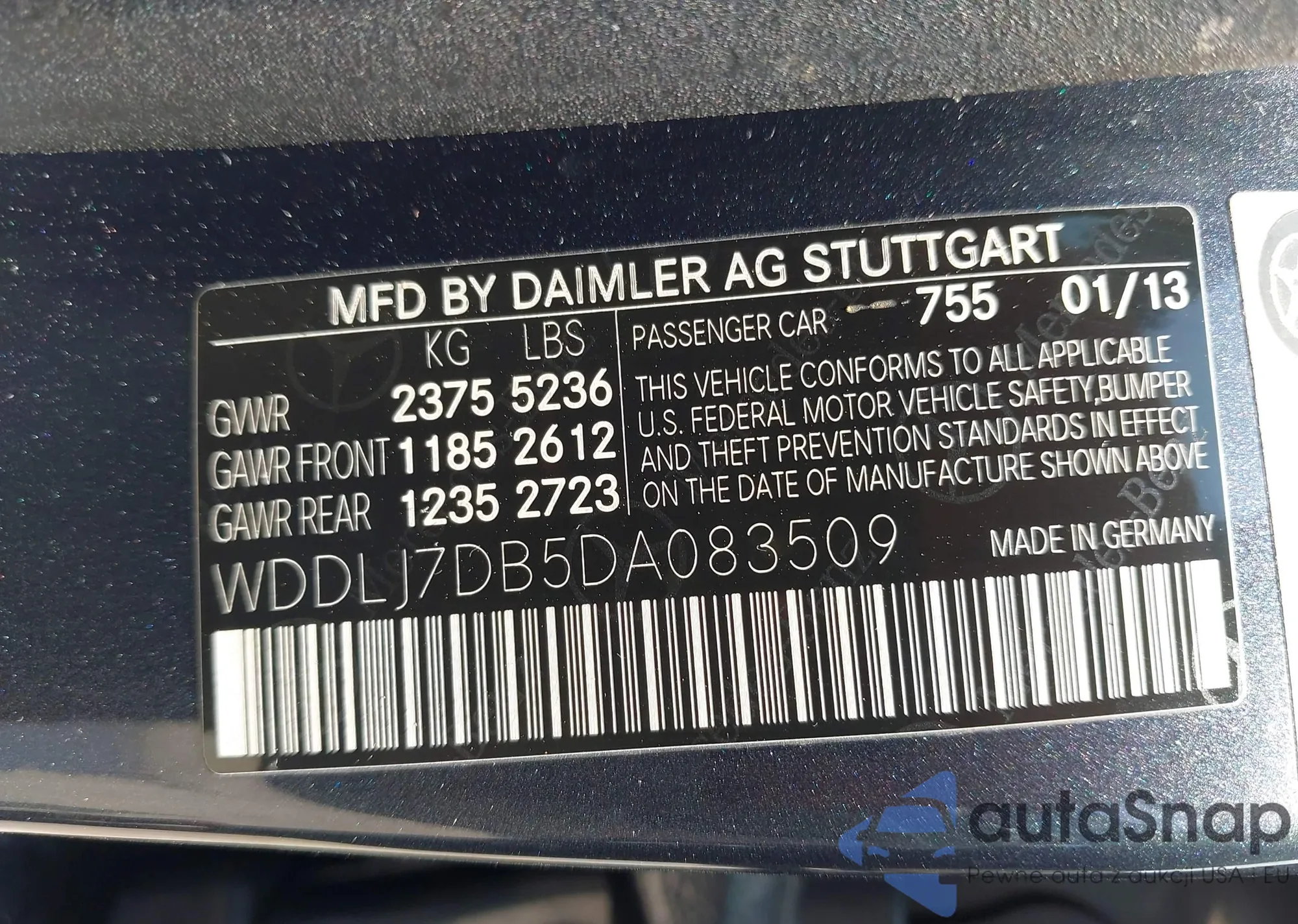 • VIN WDDLJ7DB5DA083509