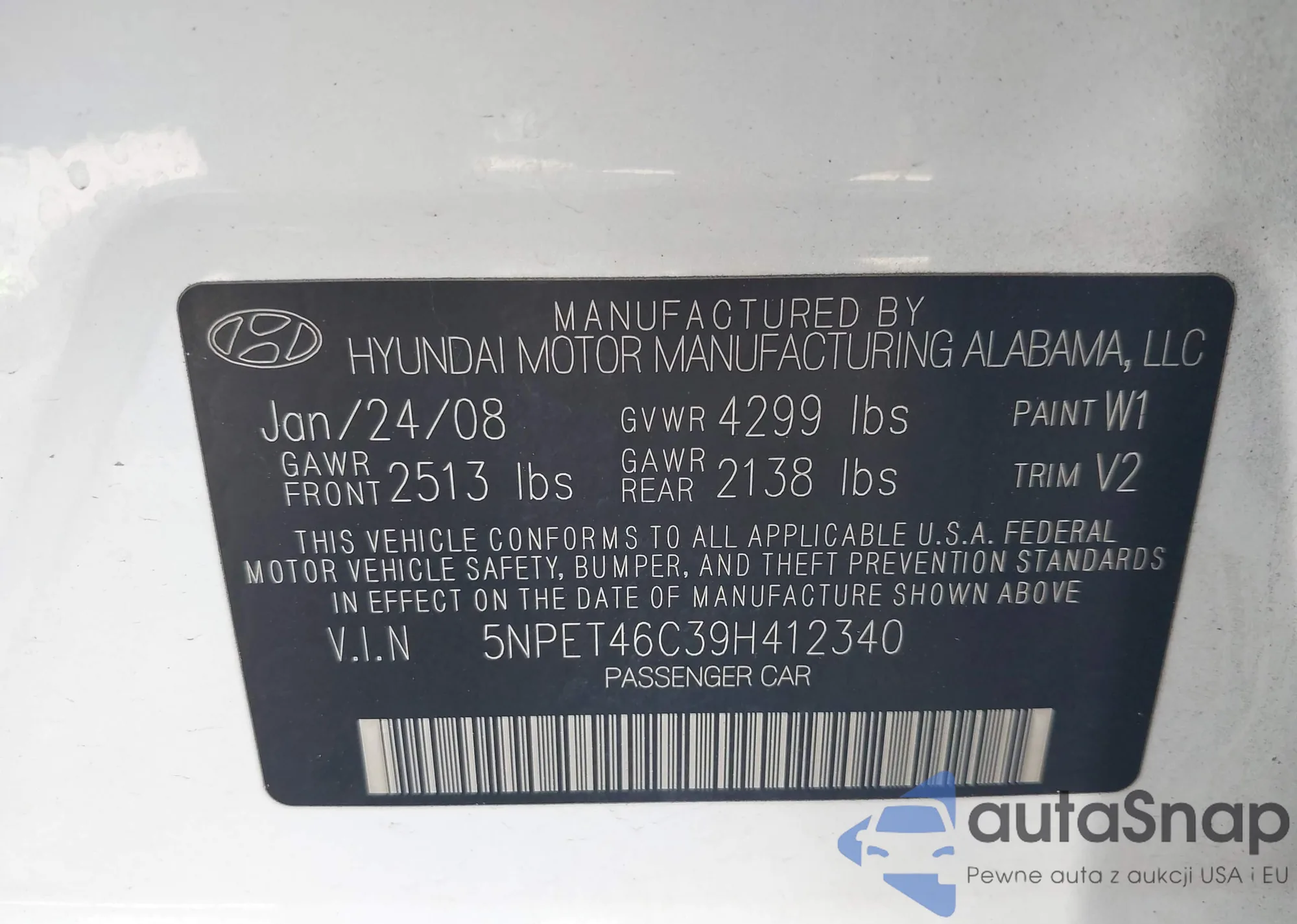 LOT: 42671417 VIN: 5NPET46C39H412340