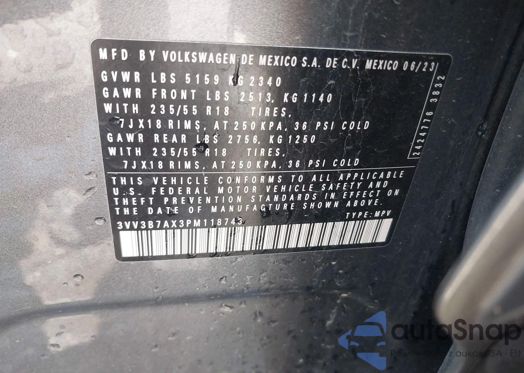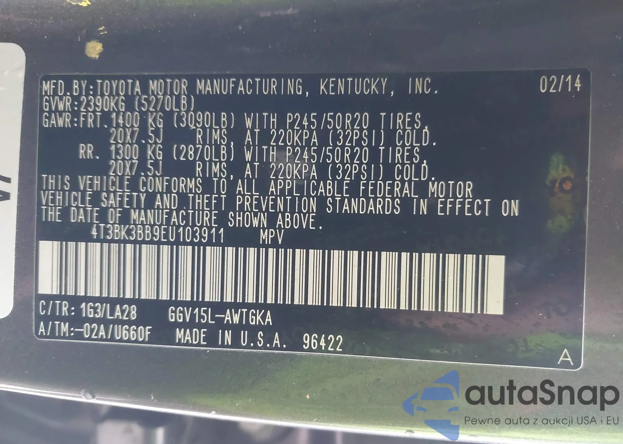 • VIN 4T3BK3BB9EU103911