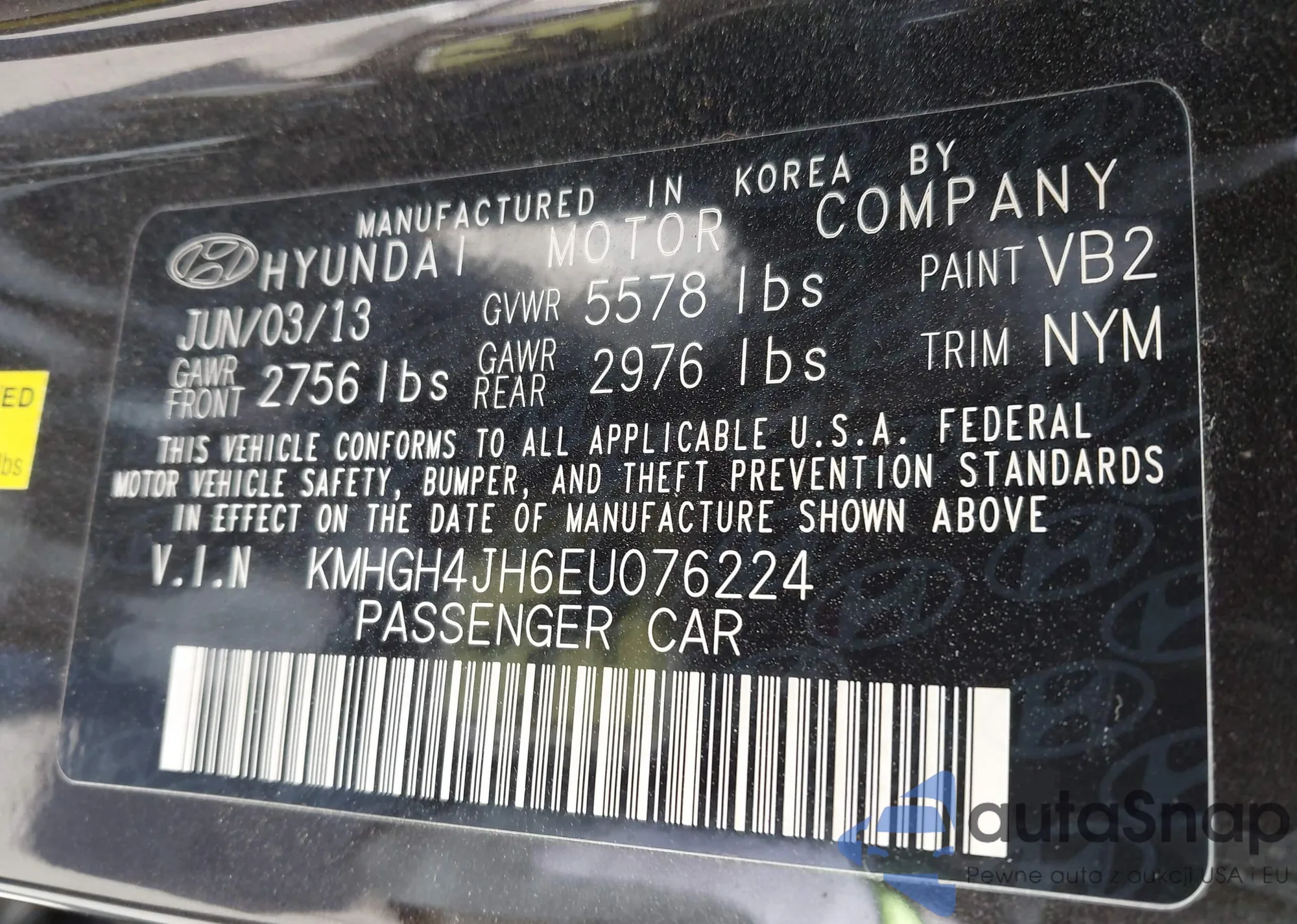 • VIN KMHGH4JH6EU076224