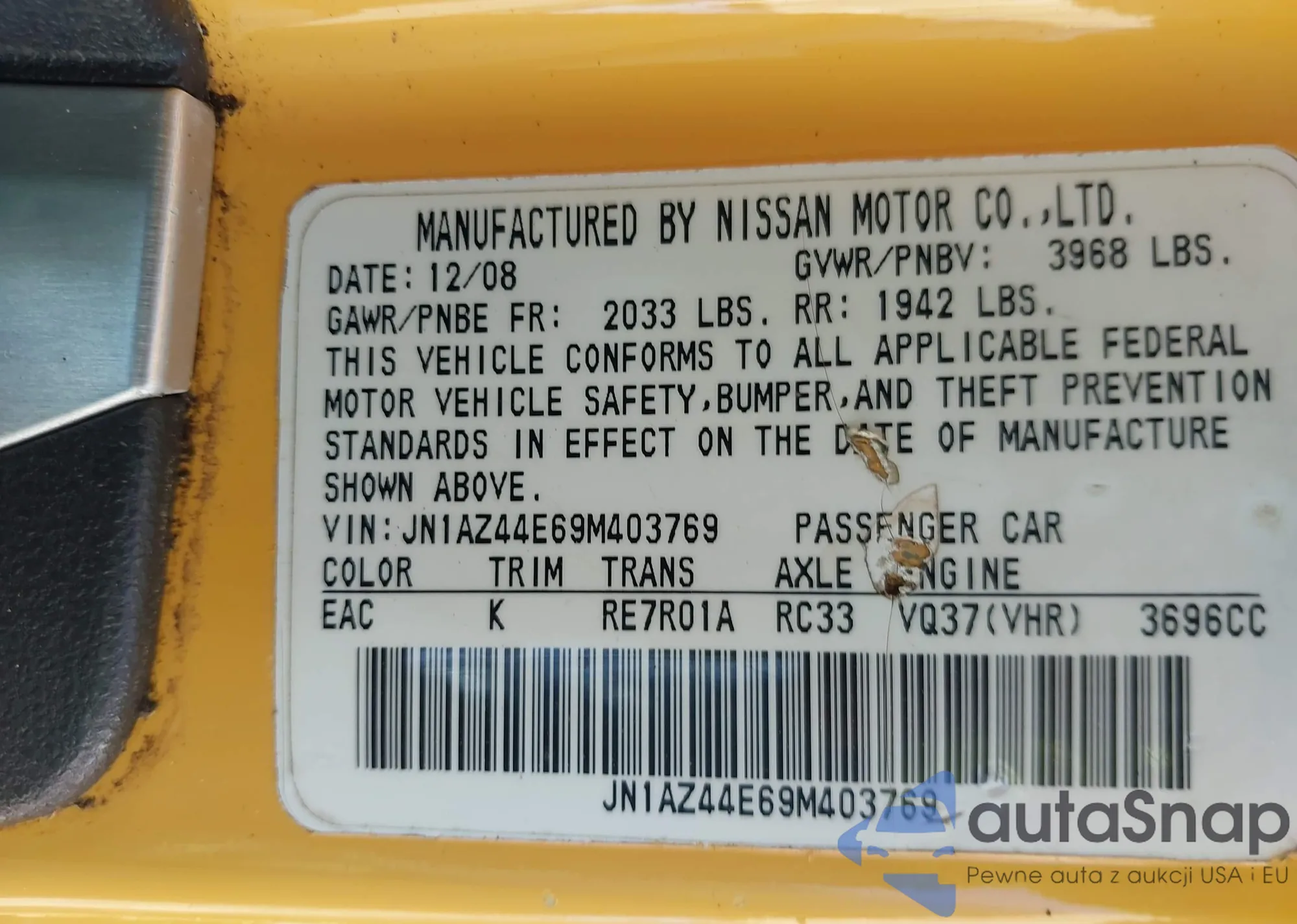 LOT: 42188735 VIN: JN1AZ44E69M403769