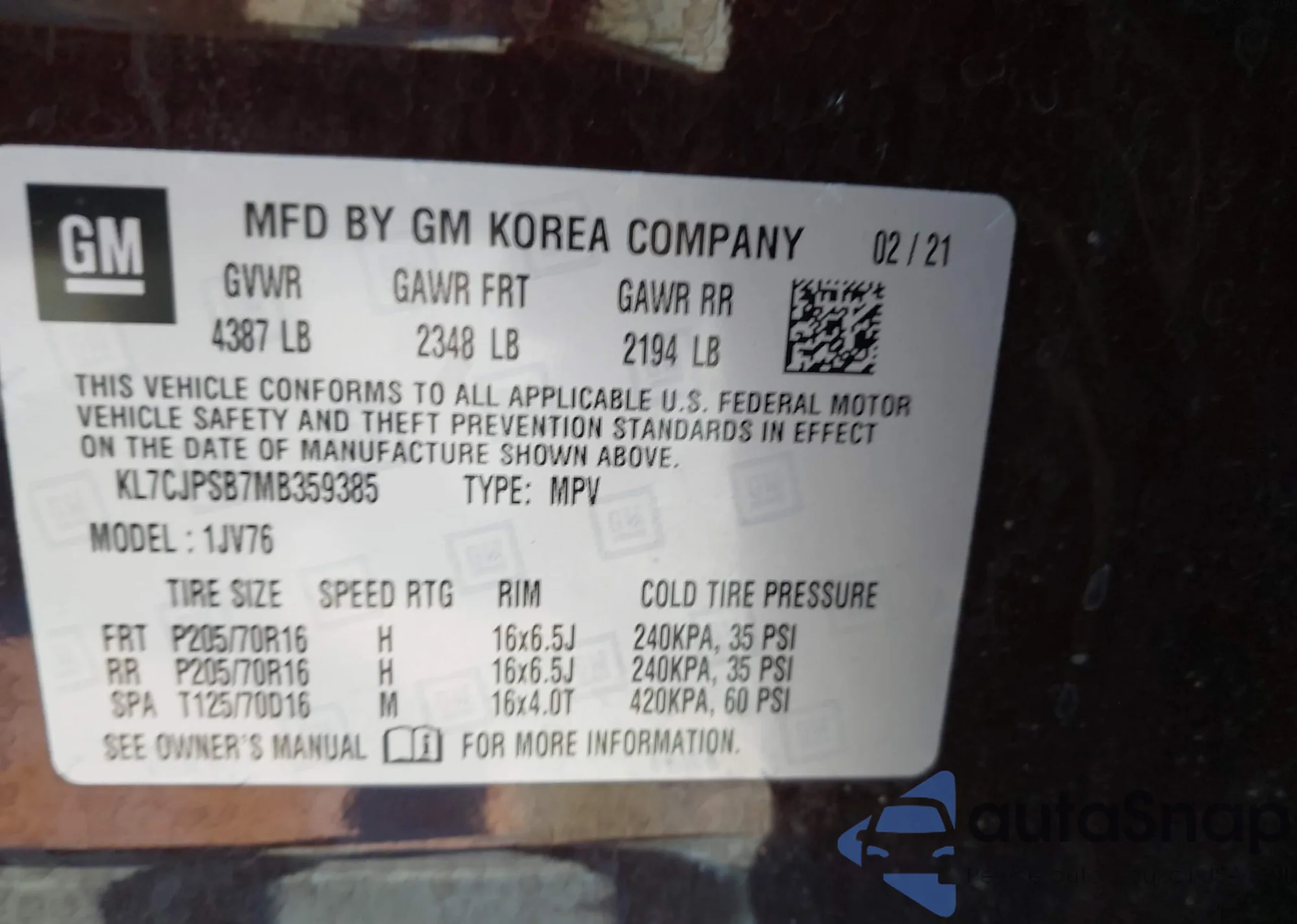 LOT: 42432569 VIN: JM3TCBDY6M0526212