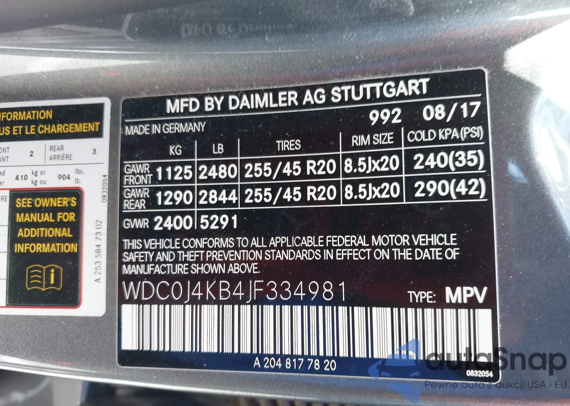 • VIN WDC0J4KB4JF334981