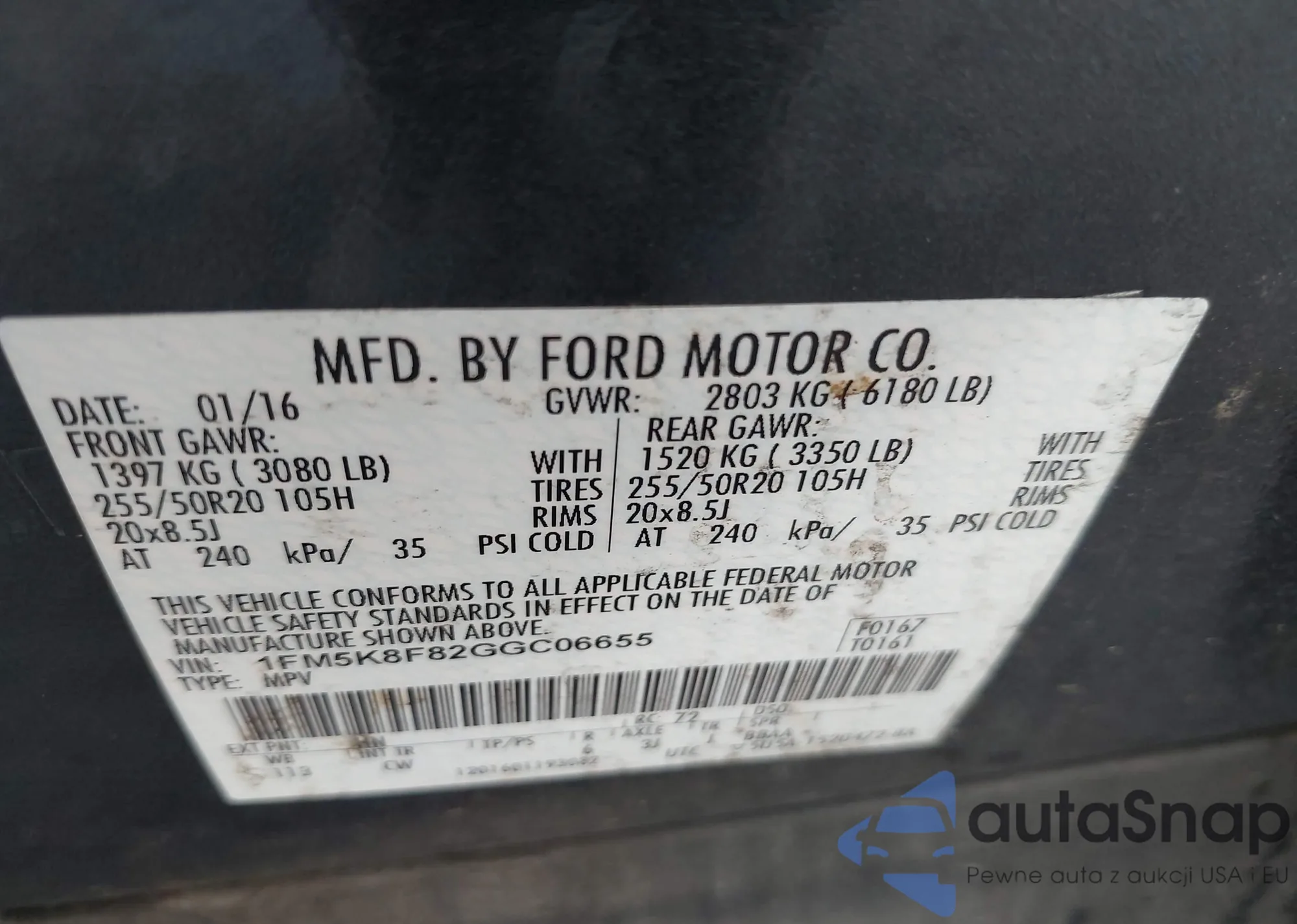 • VIN 1FM5K8F82GGC06655