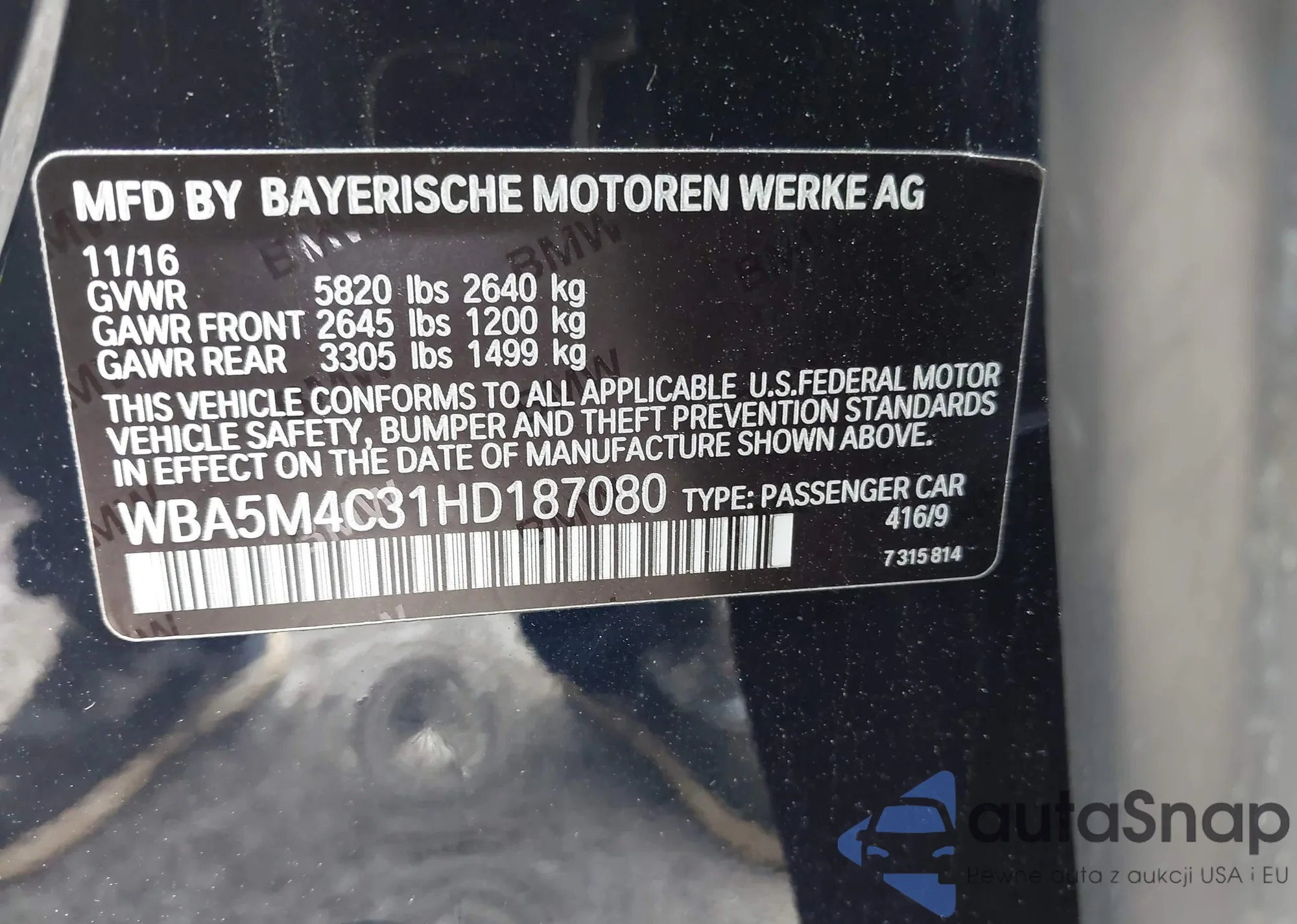 • VIN WBA5M4C31HD187080