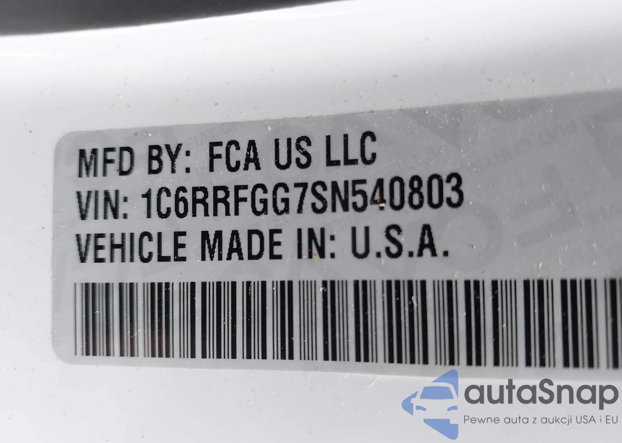 LOT: 42275470 VIN: 1C6RRFGG7SN540803