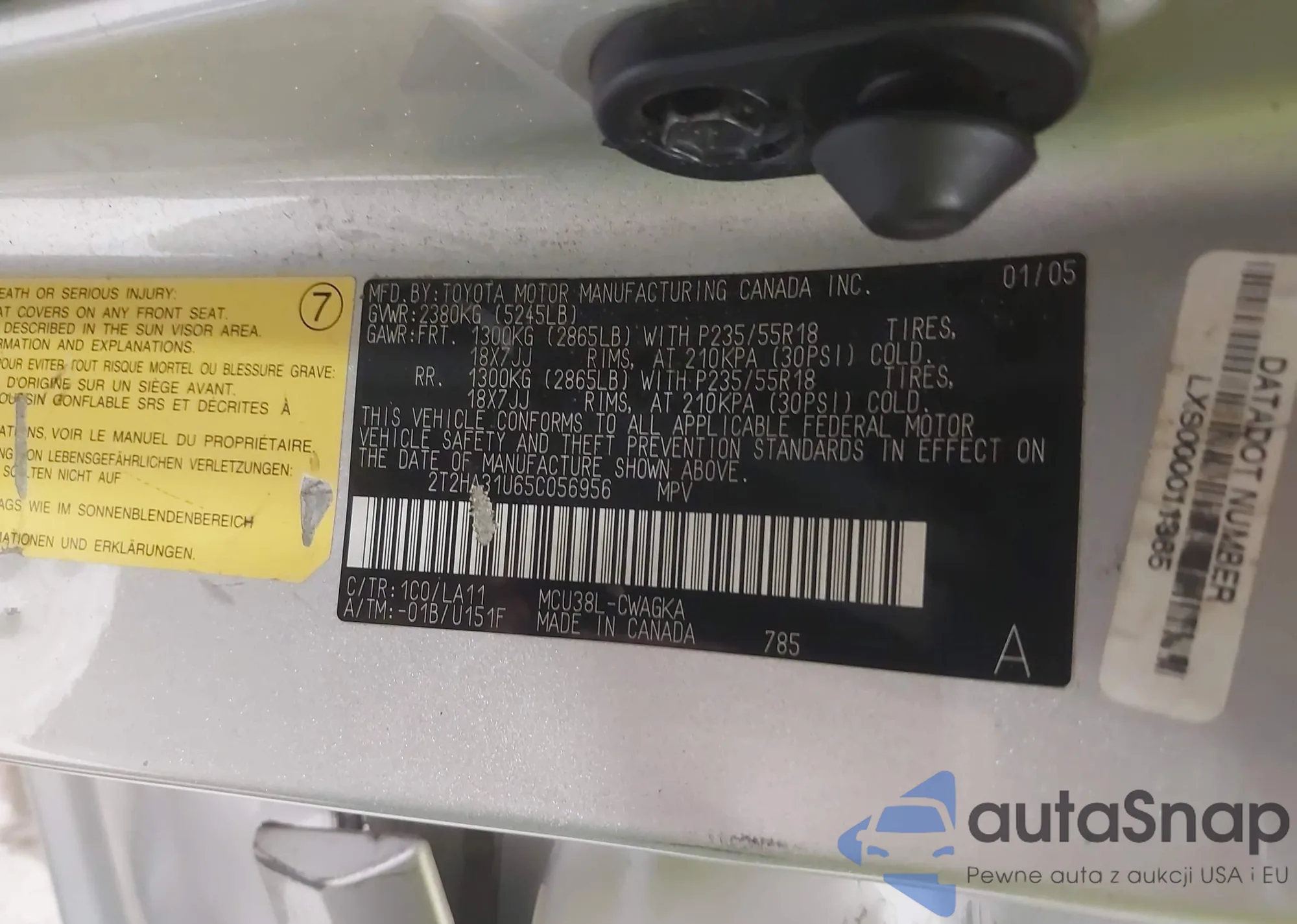 • VIN 4T1BK1FK5CU019715