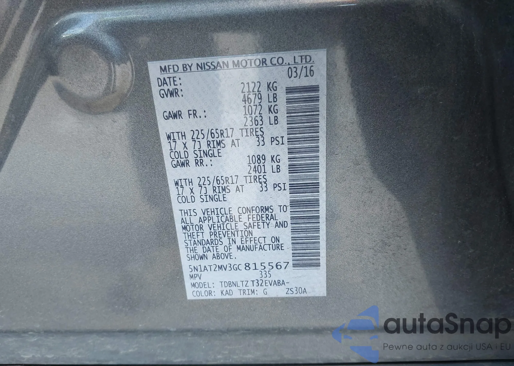 • VIN 5N1AT2MV3GC815567