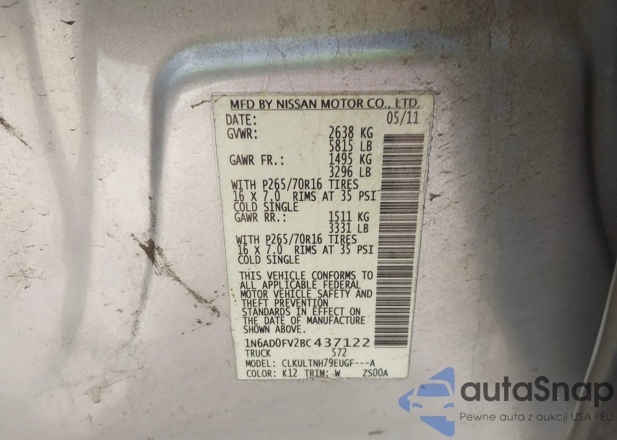 LOT: 42517785 VIN: 1N6AD0FV2BC437122