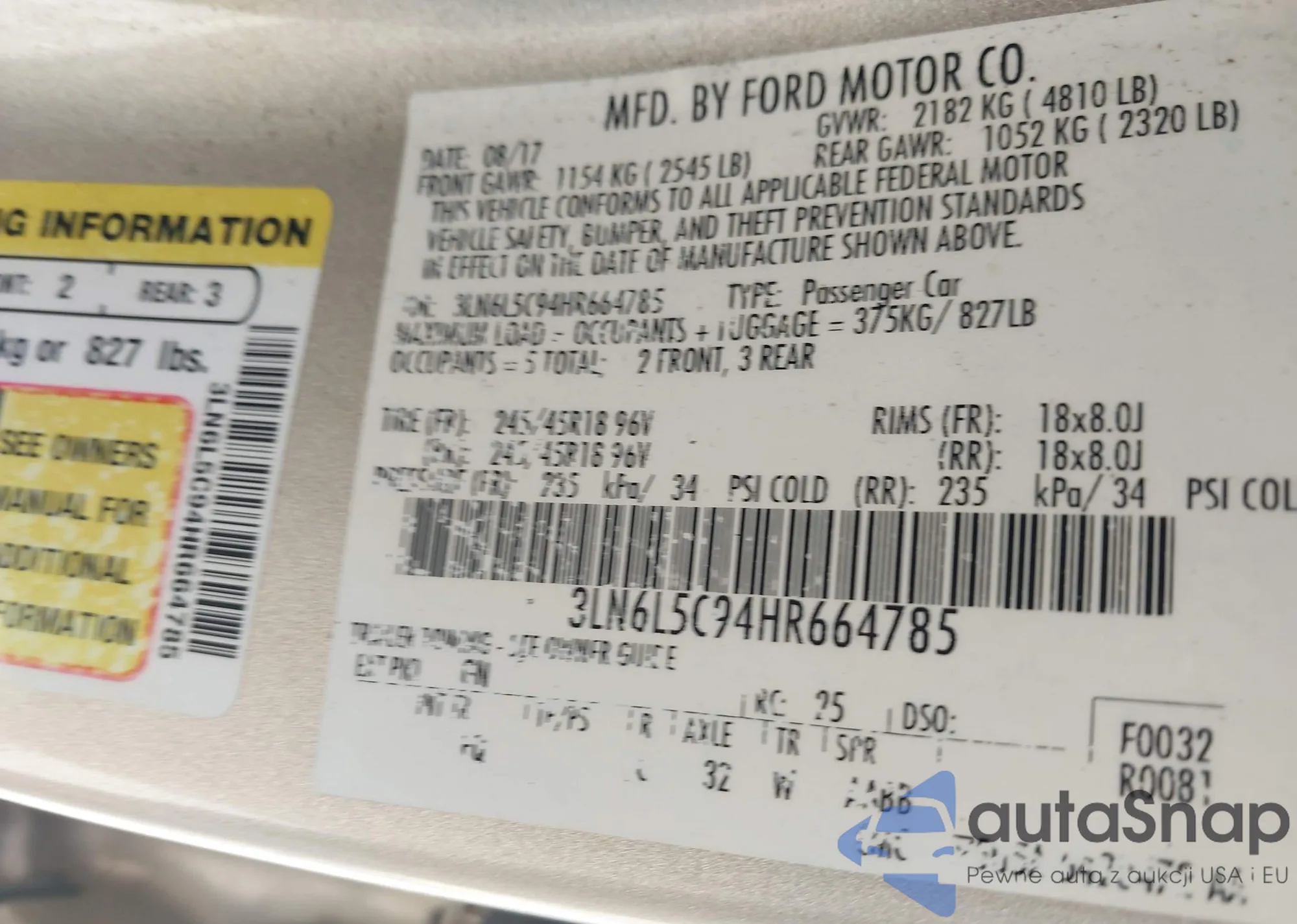 LOT: 42186325 VIN: 3FA6P0H78FR278604