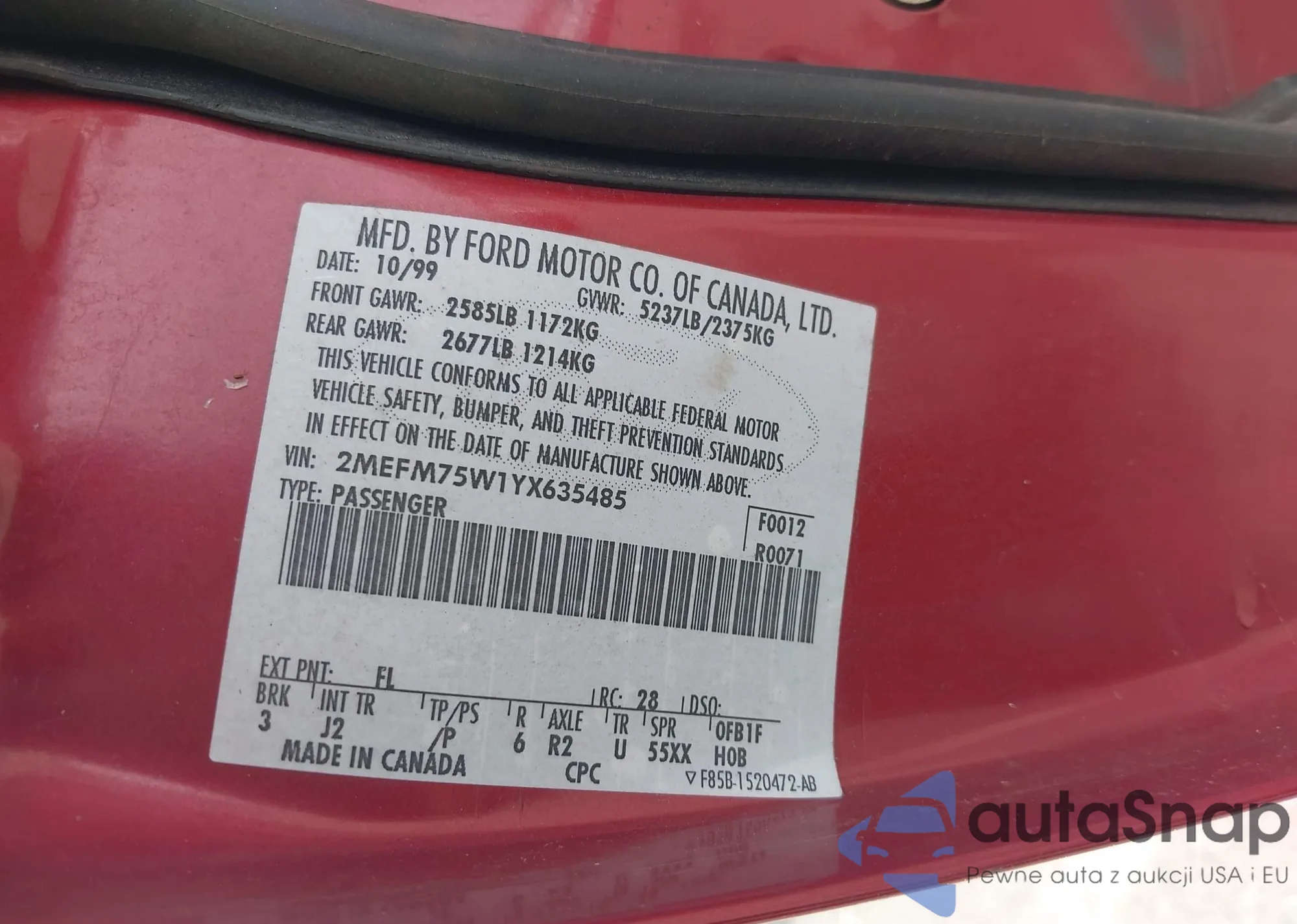LOT: 42274252 VIN: 1FTYR15E73TA50514