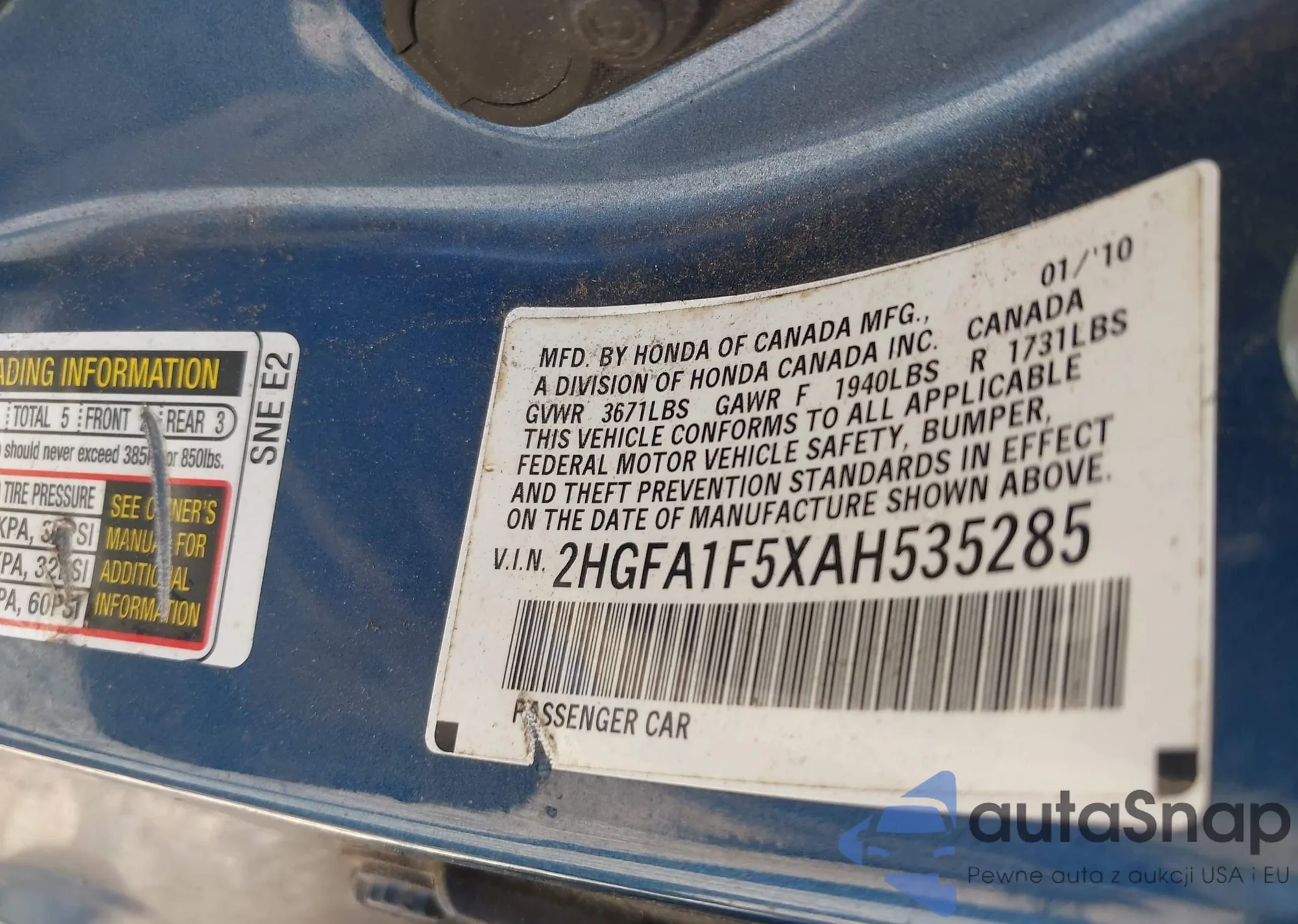 • VIN 2HGFA1F5XAH535285