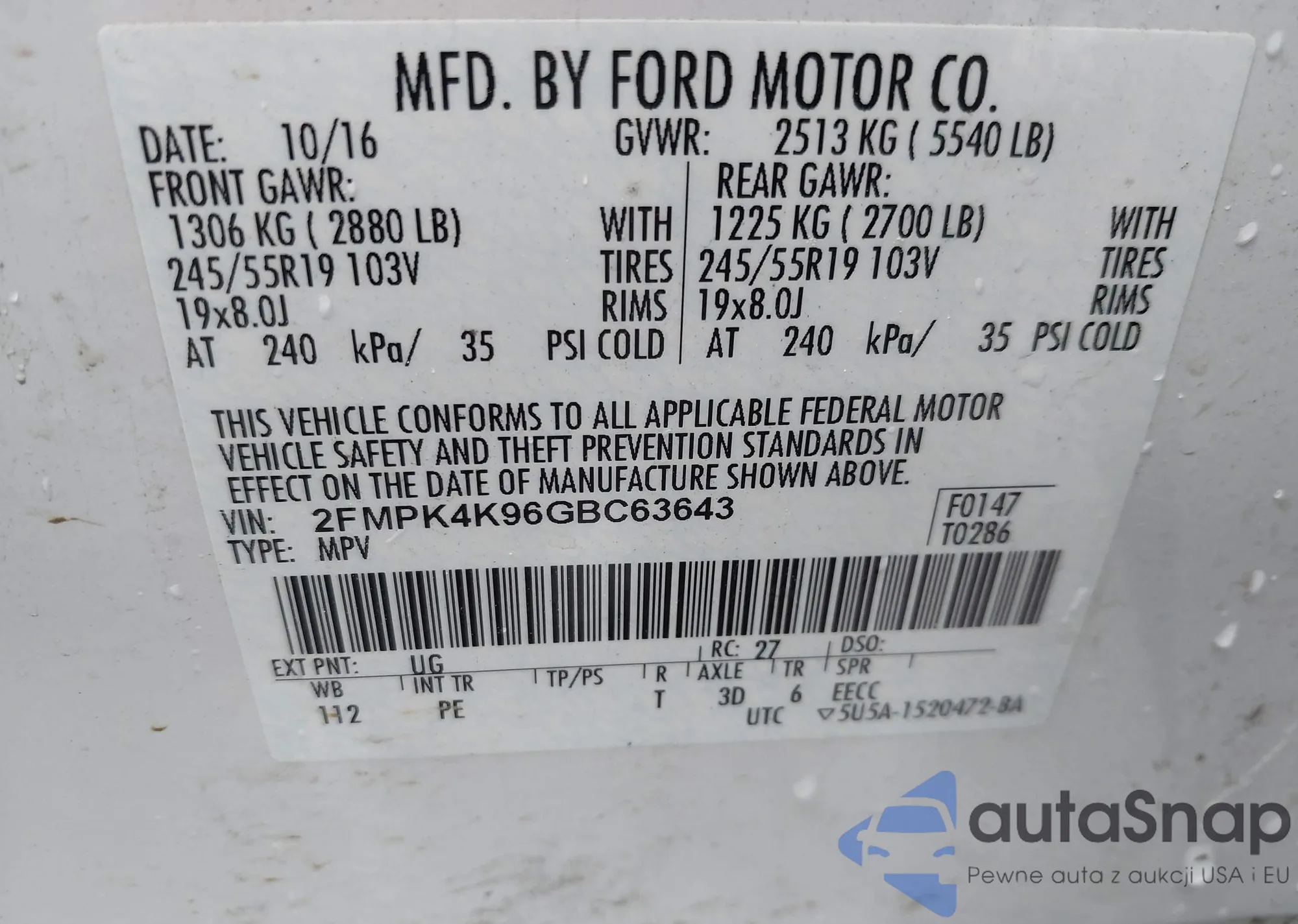 • VIN 2FMPK4K96GBC63643
