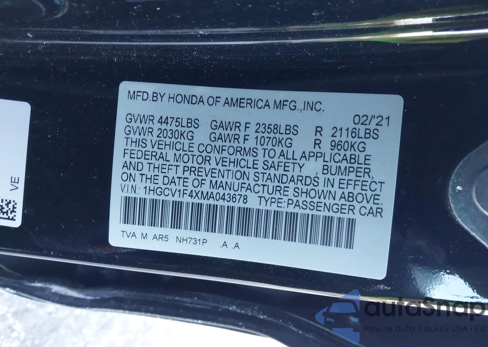 LOT: 42448353 VIN: 1HGCP2F86BA075060
