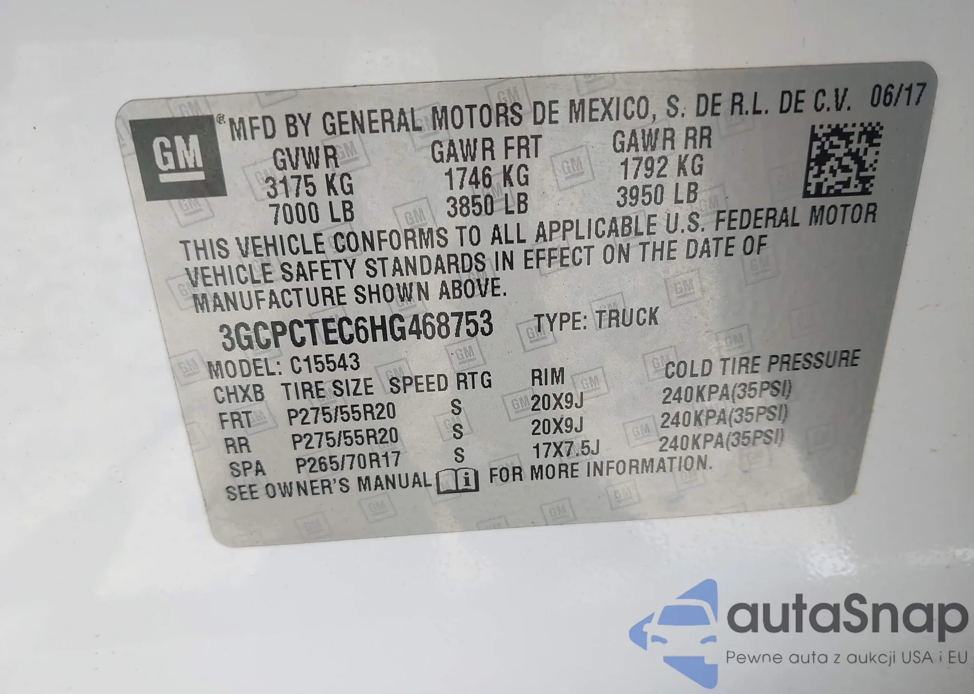 • VIN 3GCPCTEC6HG468753