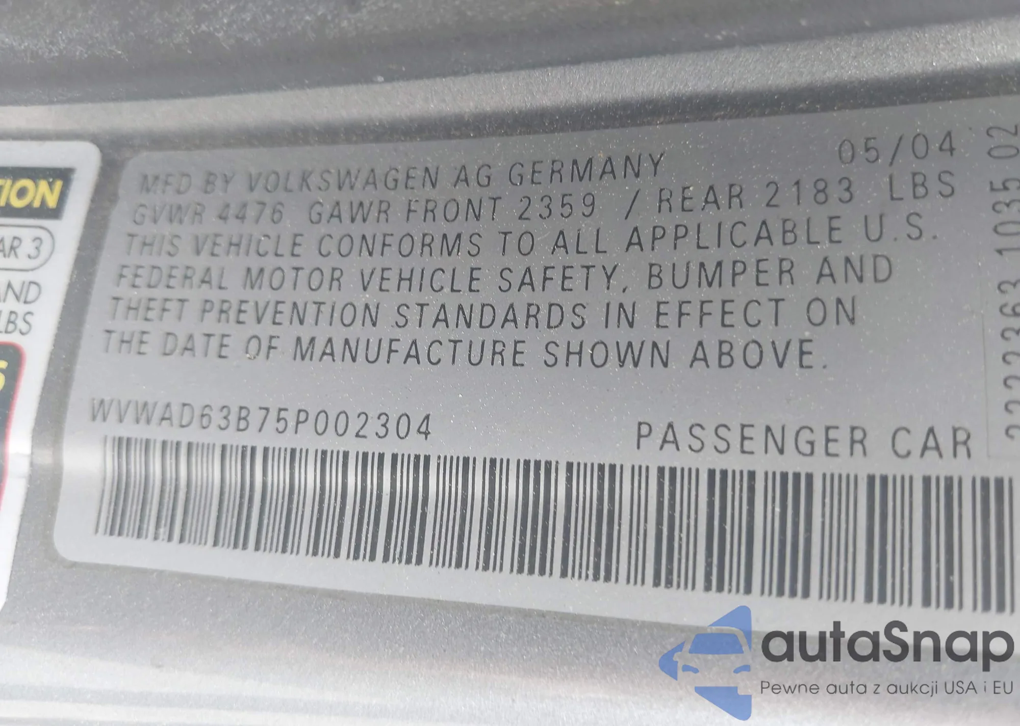 • VIN WVWAD63B75P002304