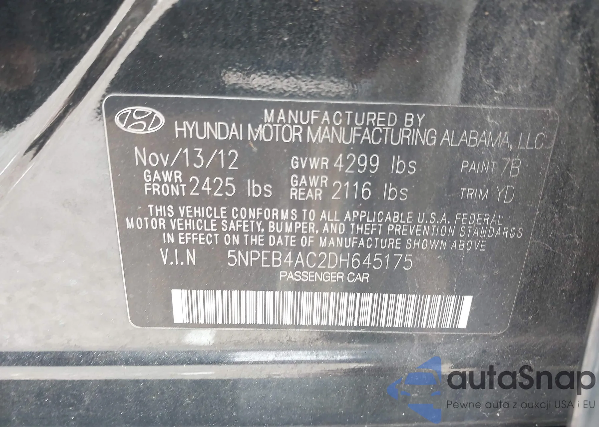 LOT: 42193735 VIN: 5NPEB4AC5DH552053