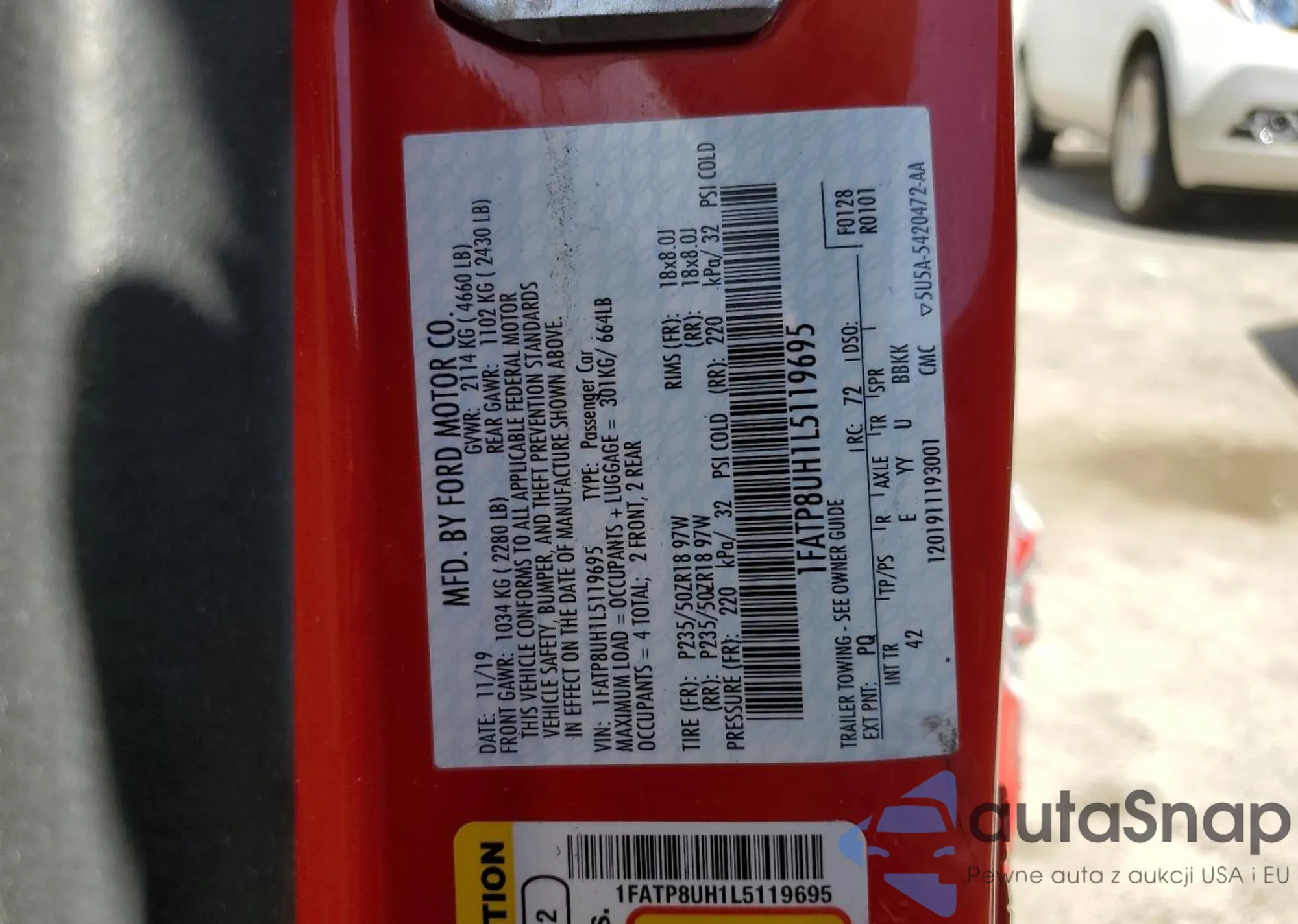 LOT: 65375822 VIN: 1FATP8UH1L5119695