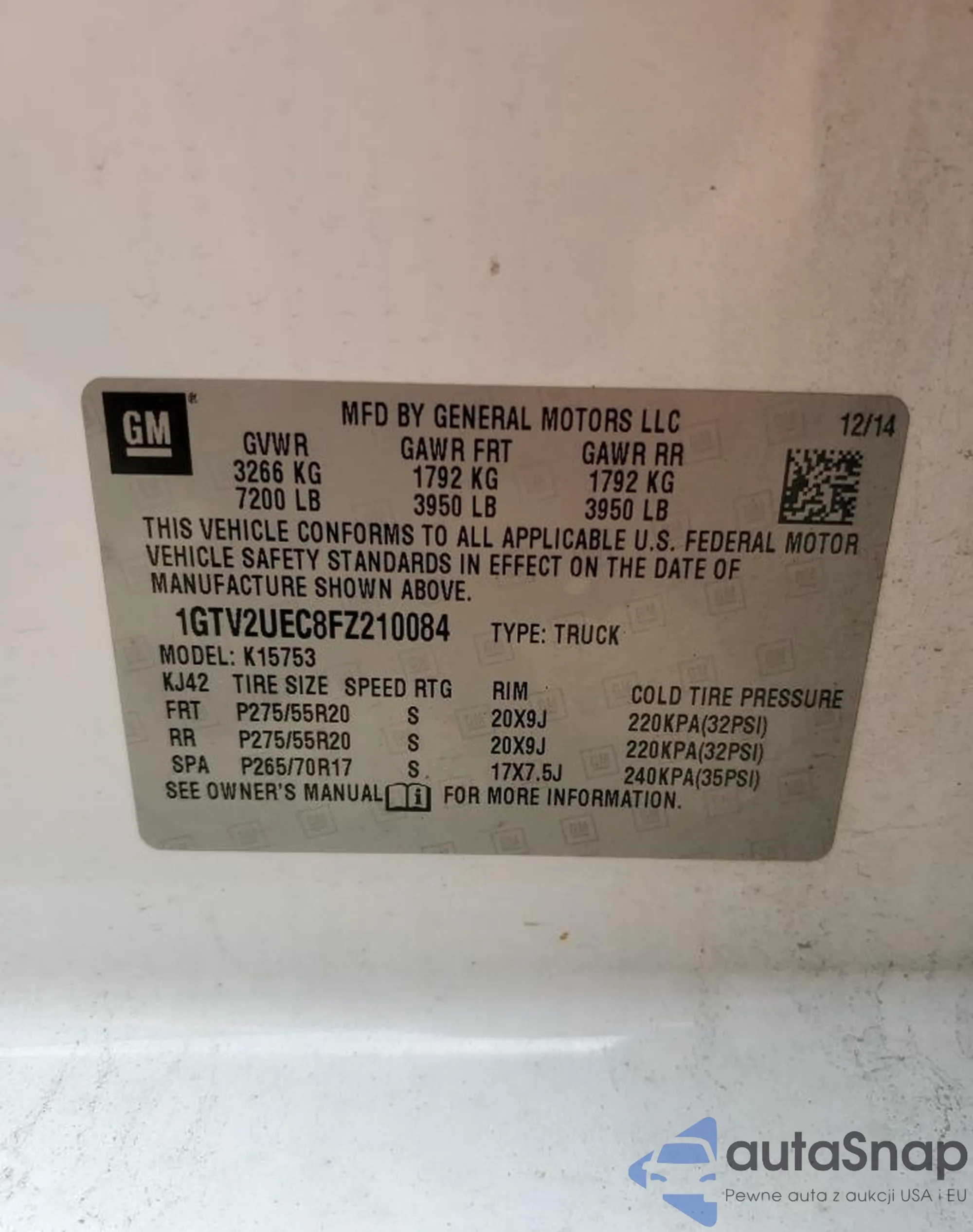 • VIN 1GTV2UEC8FZ210084