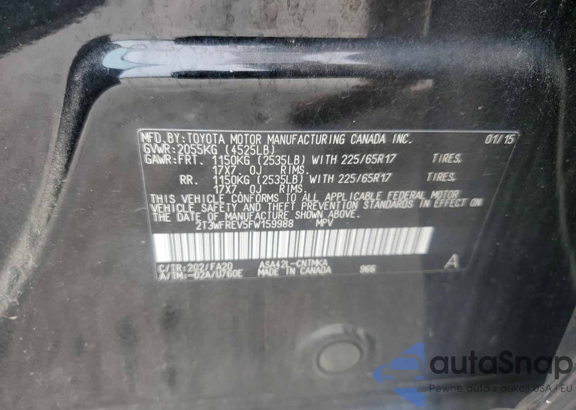LOT: 58534395 VIN: 2T3WFREV5FW159988