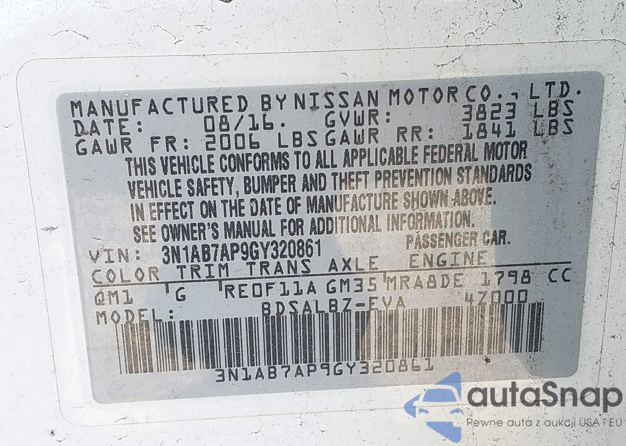 • VIN 3N1AB7AP9GY320861