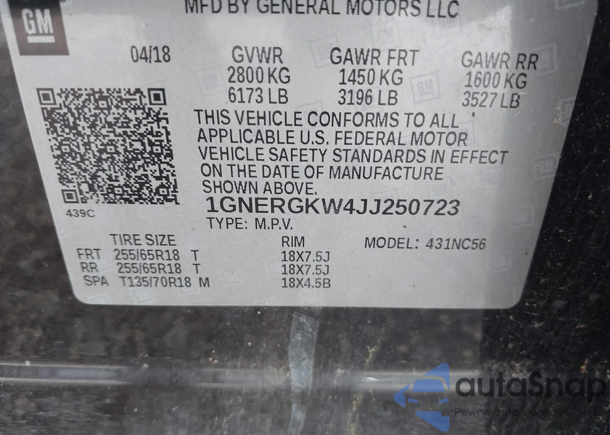 LOT: 42554703 VIN: 1GNEC13T61R178816